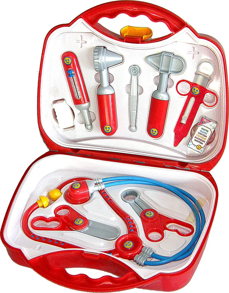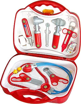 Theo Klein Doktorkoffer mit Zubehör Arztkoffer - Robuster Koffer mit praktischem Tragegriff Mit zahlreichem Zubehör: Stethoskop, Thermometer, Reflexhammer, Spritze, Pinzette, Ohrenspiegel, 2 Scheren, Pflaster, Erste Hilfe Tipps, Watteschächtelchen, Fiebertabel...