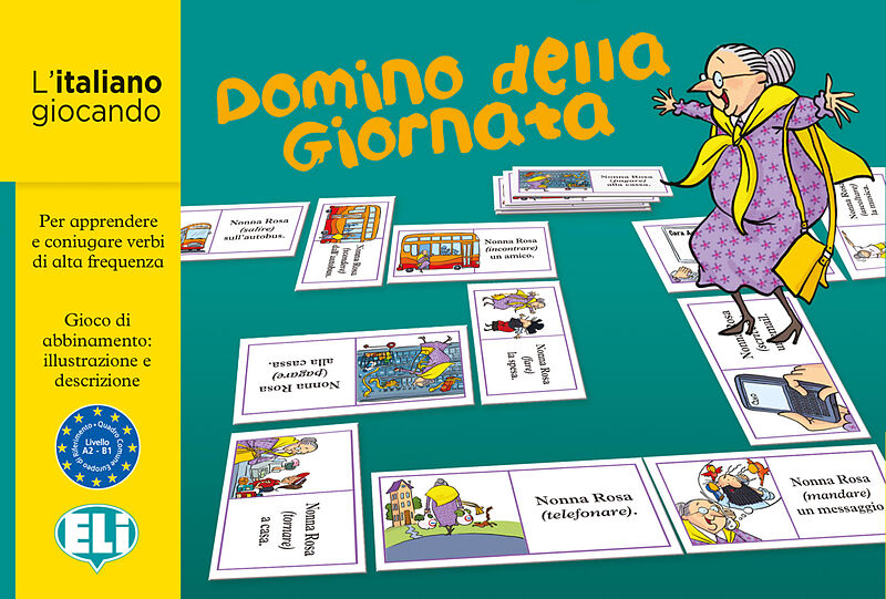 Lernen Sie Vokabeln und Grammatikstrukturen, die mit alltäglichen Handlungen in Verbindung stehen. Das Spiel erlaubt es den Spielern, regelmäßige und unregelmäßige Verben in der Gegenwart, Vergangenheit und Zukunft zu verwenden. Jeder Domino hat eine illustri...