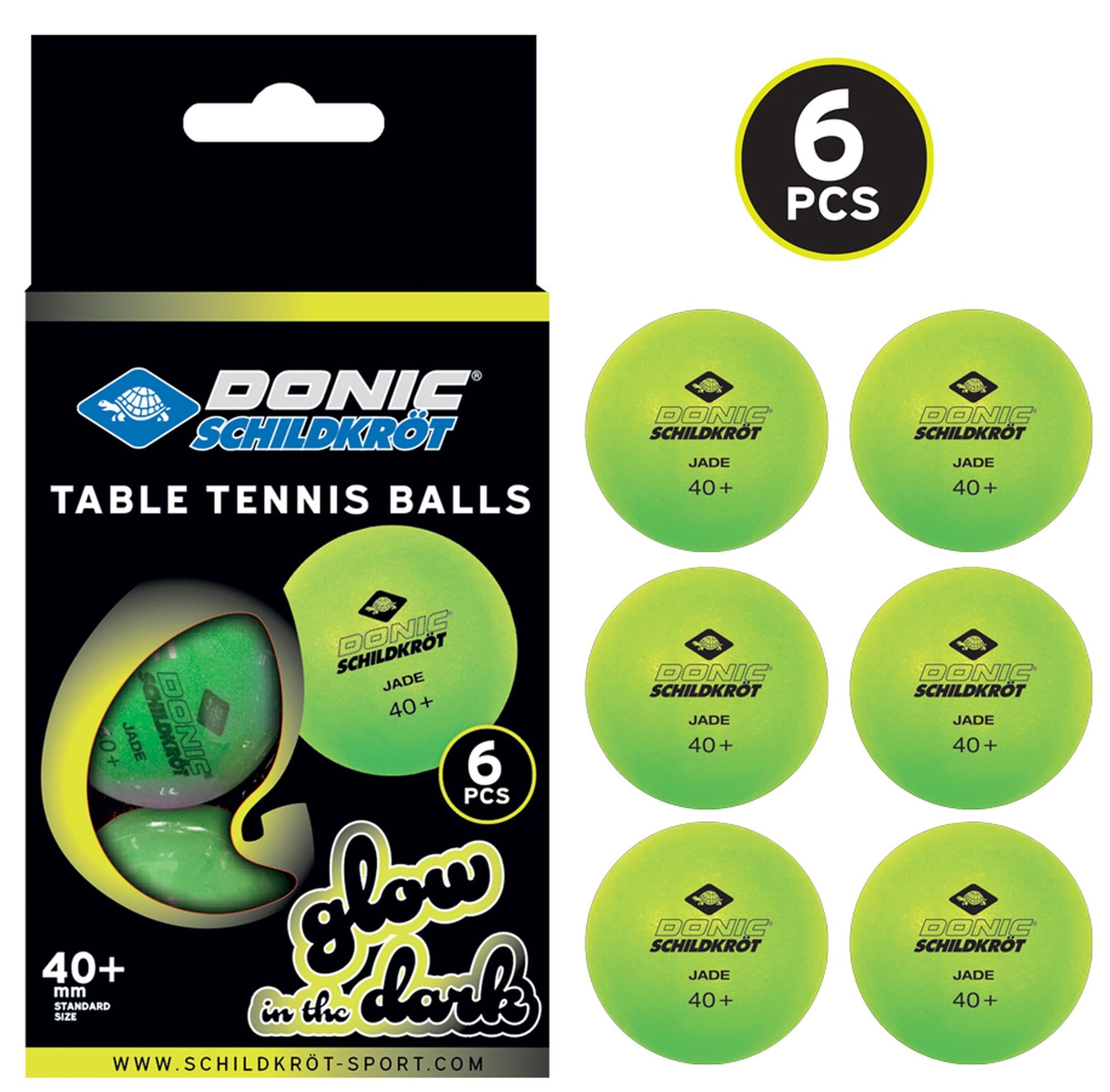 6 hellgrüne, fluoreszierende Bälle in Poly 40+ Qualität für das Spiel bei Dämmerung und Dunkelheit. Die Bälle lassen sich einfach im Tageslicht aufladen. Durch das fluoreszierende Material leuchten die Bälle bei Dunkelheit nach. Durchmesser: 40mm, in der neuen...