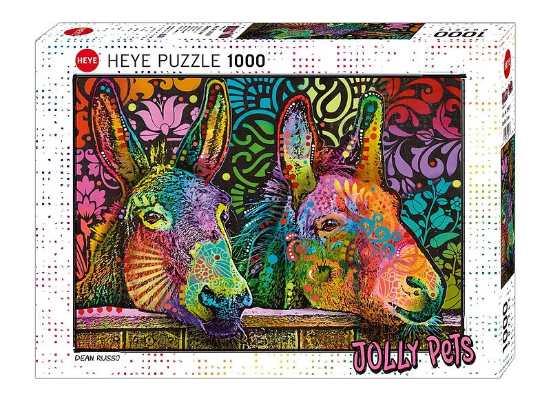 Dean Russo hat ein Herz für alle Tiere, auch wenn es ausgemachte Esel sind! Die beiden jedenfalls halten fest zusammen, genau wie die Puzzleteile des Motivs! IAAA! Gelegte Größe: 70x50 cm.