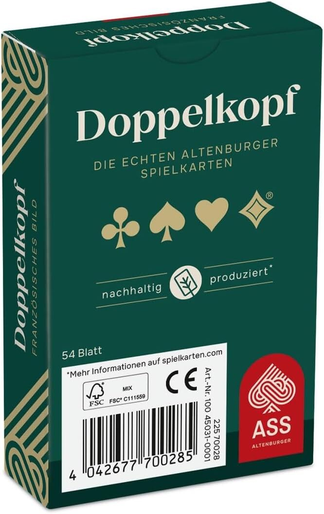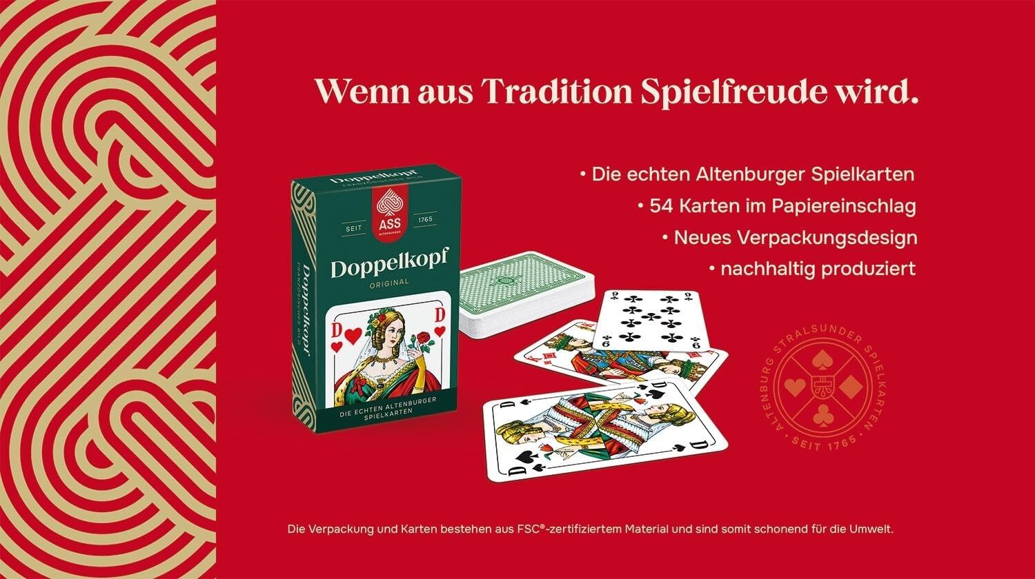 ASS Altenburger ist das älteste bekannte Unternehmen in der Entwicklung und Produktion von Spielkarten in ganz Europa. Ganz nach dem Motto: Ein Herz für Kartenspiele - seit 1767. Das neue FSC Doppelkopf kommt komplett ohne Plastik im Spiel aus. Die Karten trag...