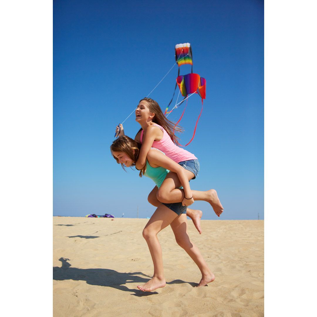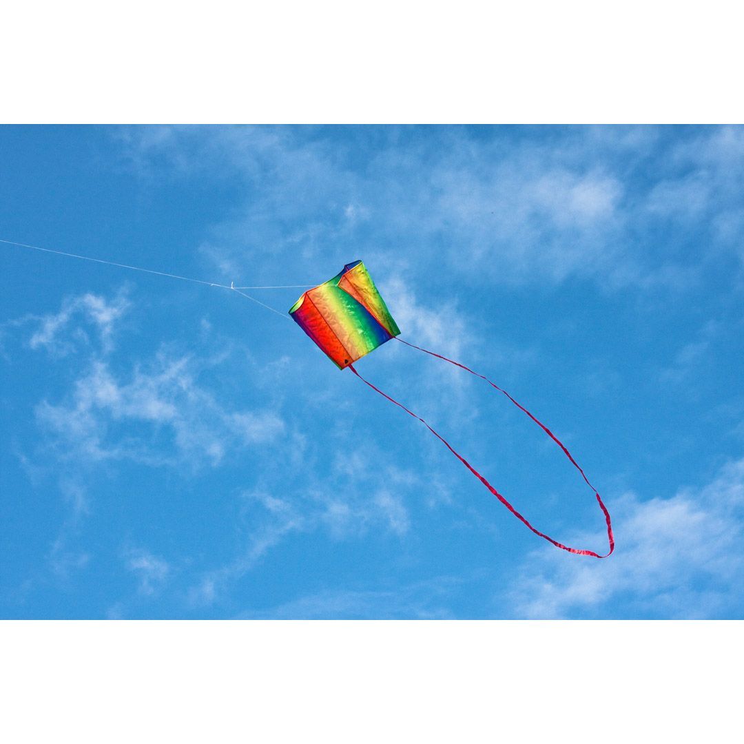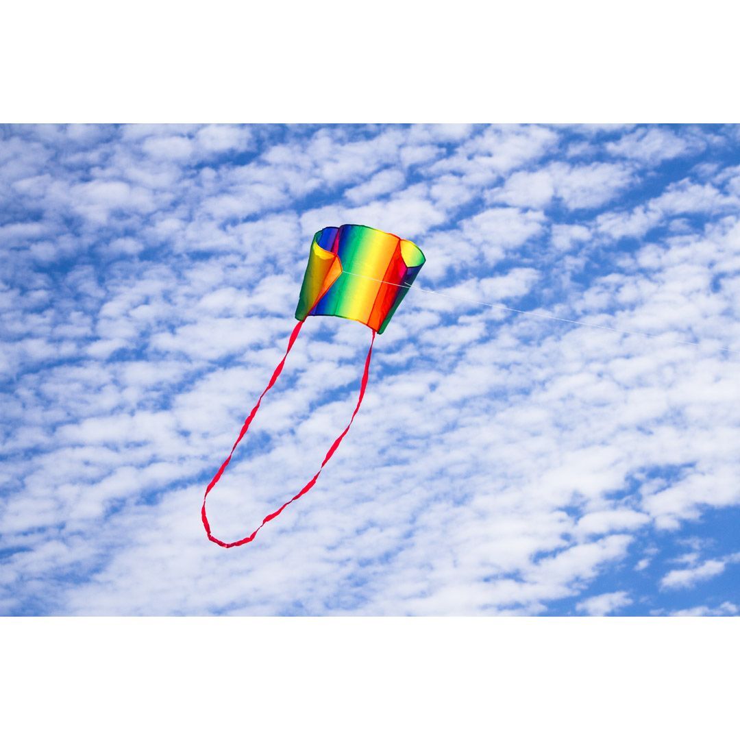 Sleddy Rainbow ist ein farbenfroher handlicher Einleinerdrachen in einer praktischen kleinen Kunststofftasche mit Reißverschluß. Die Kunststofftasche hat eine Größe von ca. 13 x 13 x 4 cm. Mit Karabiner und zwei Schlaufen zur Befestigung an einem Gürtel.