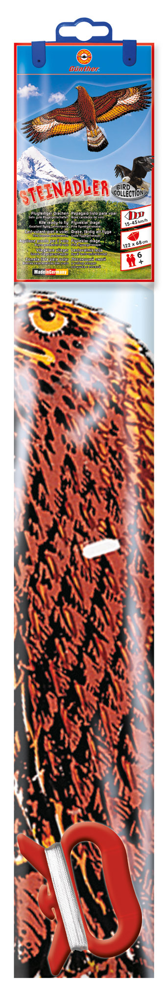 Drachen Steinadler, 122x68cm GÜNTHE Das Schönste am Herbst: Man kann endlich wieder einen Drachen steigen lassen. Wenn die ersten Herbstwinde pfeifen, zieht es viele Kinder nach draußen. Sie können es kaum erwarten, bis die fliegenden Gesellen in die Luft gehe...