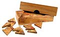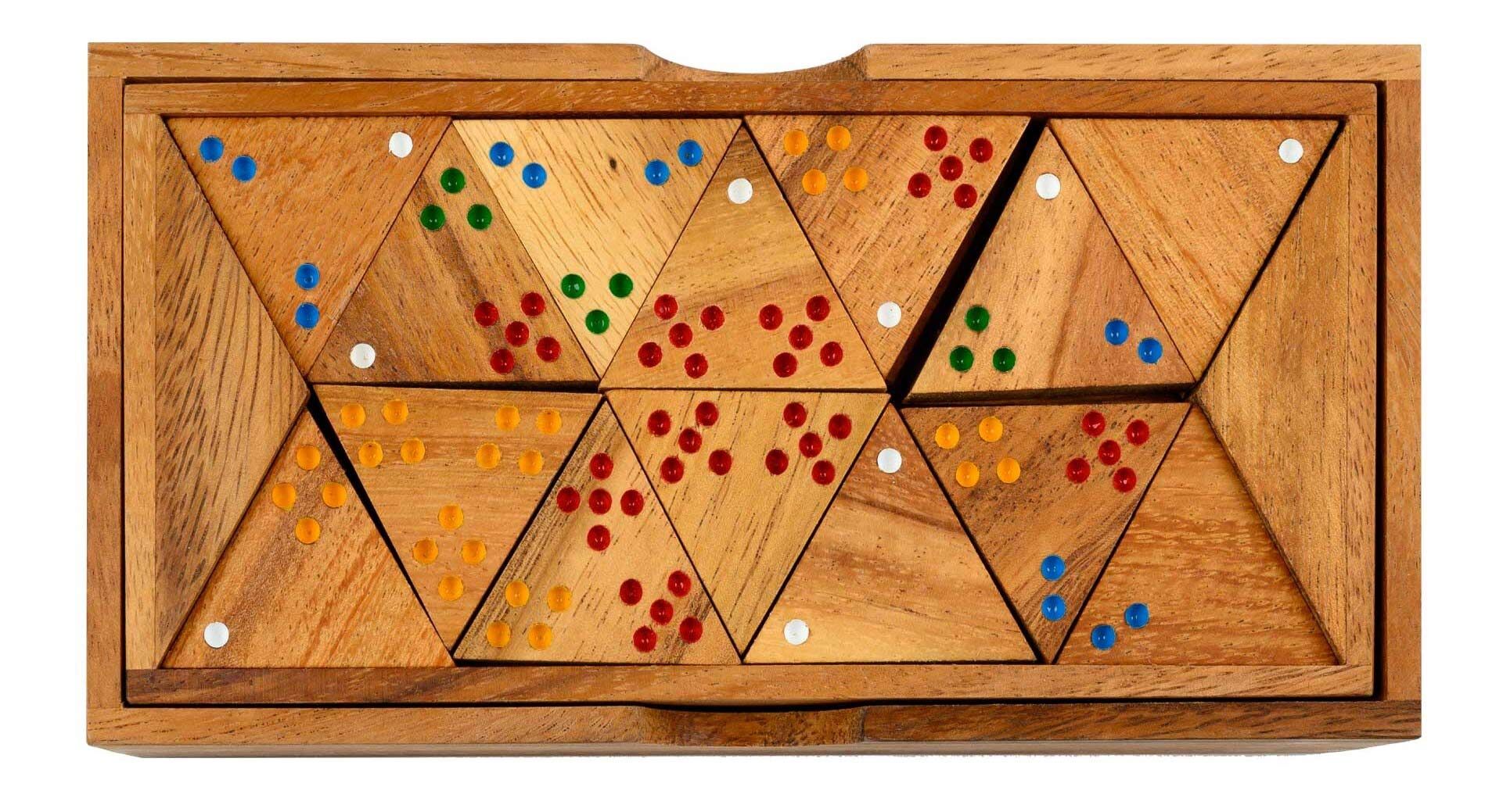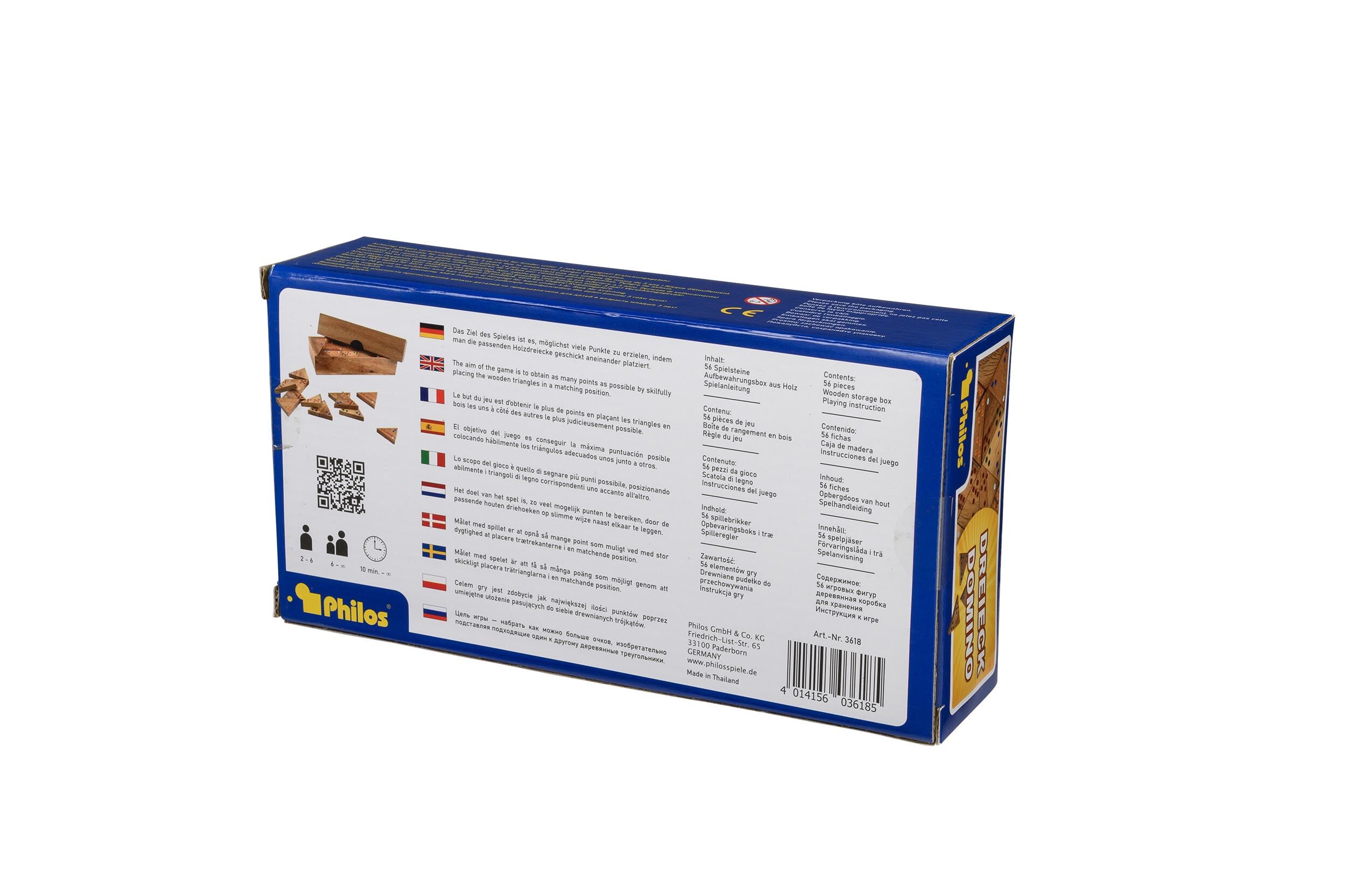 Das Ziel des Spieles ist es, möglichst viele Punkte zu erzielen, indem man die passenden Holzdreiecke geschickt aneinander platziert. Inhalt: 1 Holzbox, 56 Spielsteine Material: Samena Holz Maße Spiel: 200 x 100 x 45 mm Maße Verpackung: 205 x 105 x 52 mm Gewic...