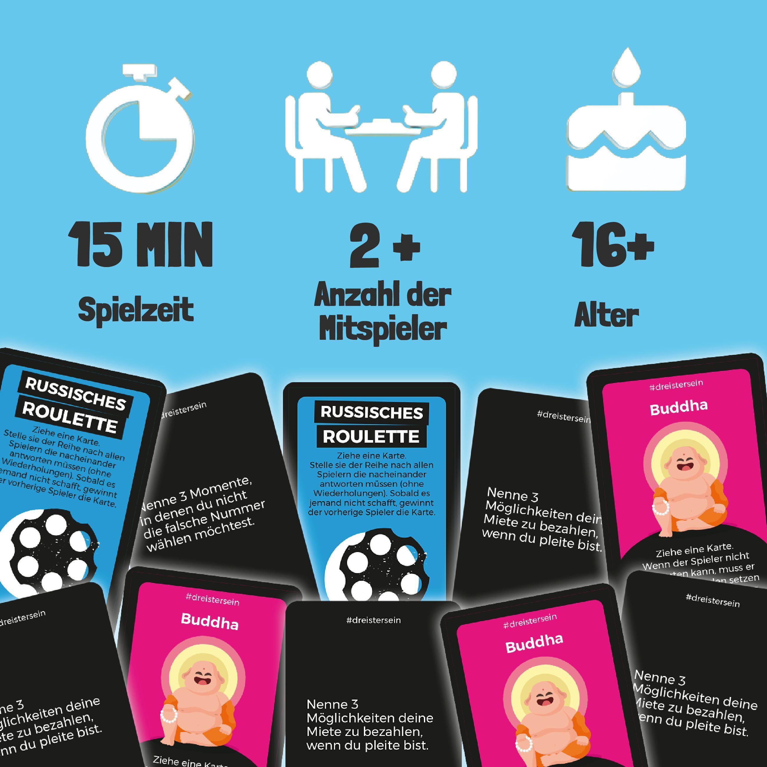 Dreister - Unzensiert und Ungeniert. Die Fortsetzung von Dreister Das Original mit 480 brandneuen Fragen und Aktionskarten. Ist eigenständig ohne Dreister Das Original spielbar.