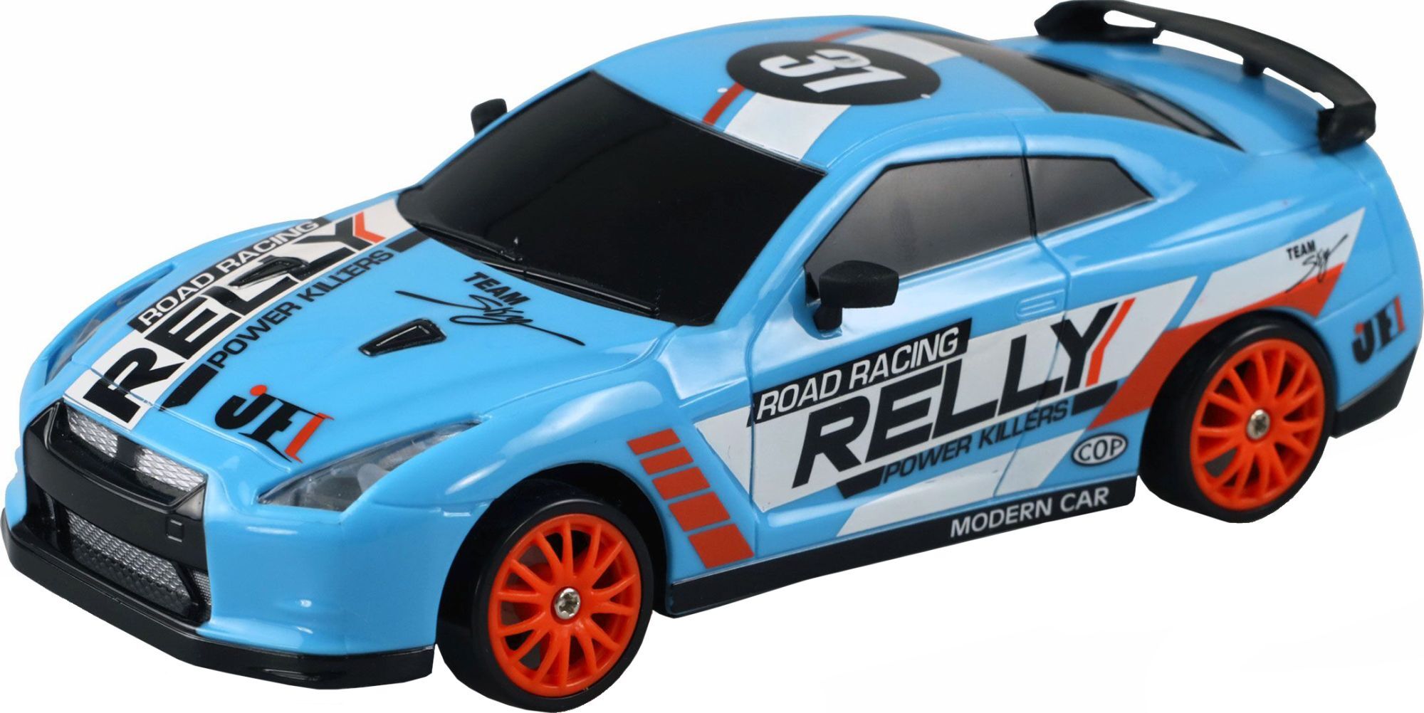 Drift Sport Car 1:24 4WD 2,4GHz RTR blau Nachbau eines rassigen Sportwagens im Maßstab 1:24 als RTR-Modell. Die montierten Drift Reifen erlauben extreme Driftwinkel auf jedem glatten Untergrund und die Frontbeleuchtung mit LEDs unterstreicht den sportlichen Ch...