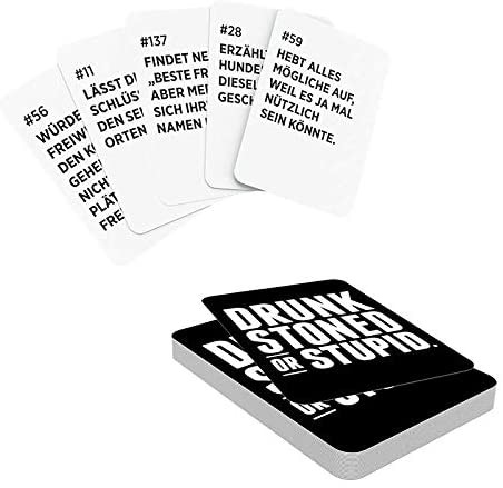 Drunk, Stoned or Stupid ist ein Partyspiel, bei dem in jeder Runde eine Karte gezogen wird und die Gruppe entscheidet, wer in der Gruppe diese Karte erhalten soll. Zuerst erklärt sich ein Spieler zum Richter und liest eine Karte vor. Jede Person sagt dann, wer...