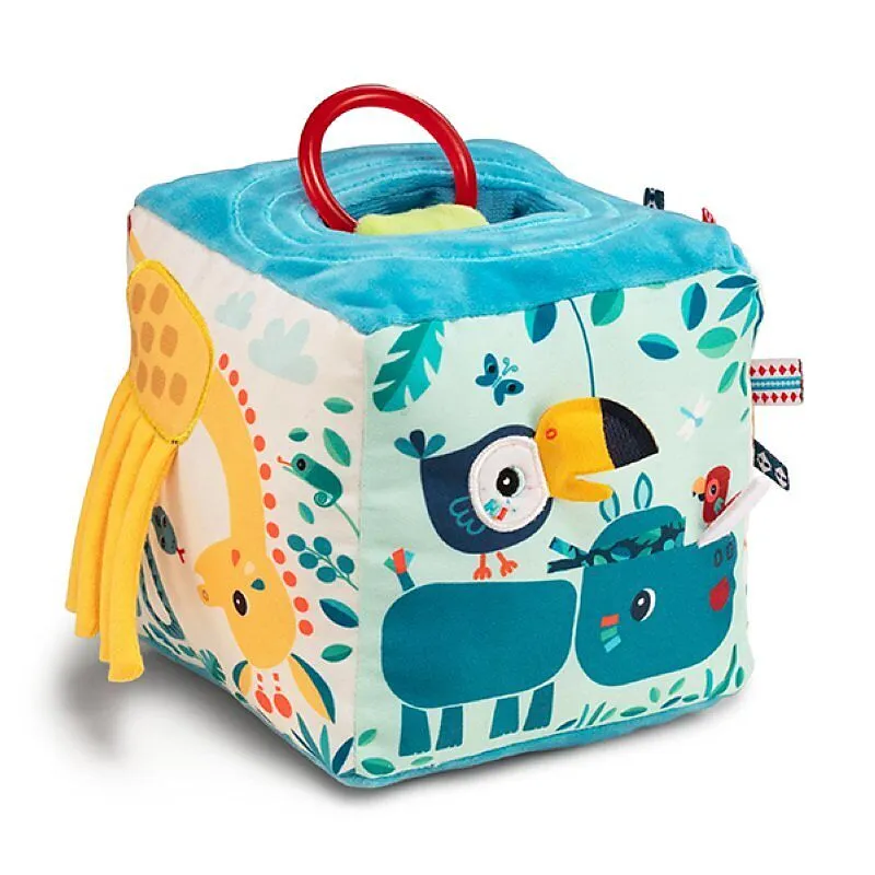 Auf diesem Würfel mit verschiedenen Motiven und Texturen gibt es auf jeder Seite etwas zu erleben. Eine Quelle an Inspiration und Stimulation für kleine Entdecker. Durch das Band einfach zu befestigen.