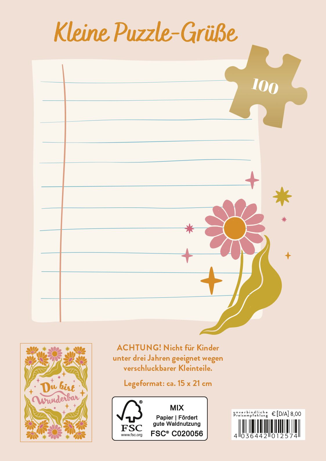 Sag deinen Lieben »Du bist wunderbar« - Originelles 100-Teile-Puzzle als Kompliment für liebe Menschen Über Komplimente, die von Herzen kommen, freuen wir uns immer - mit diesem Mini-Puzzle kannst du besonderen Menschen sagen, wie toll du sie findest! Auf der...
