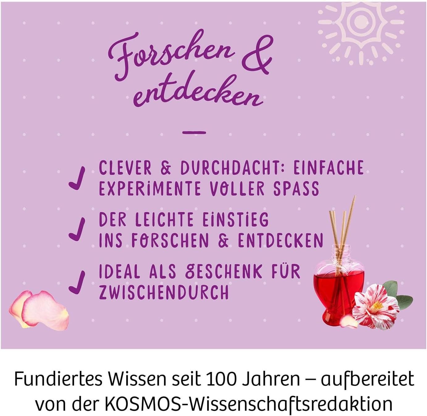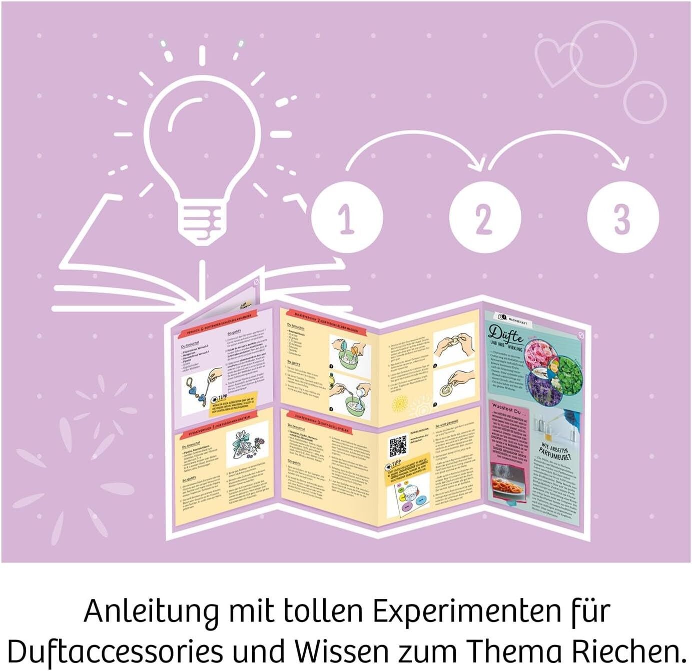 Bringe dein Zimmer zum Duften Mit diesem einzigartigen Experimentierkasten können Kinder ab acht Jahren ihre ganz eigenen Raumdüfte kreieren und dabei in die spannende Welt der Parfüm-Herstellung eintauchen. Dank kreativer Zusatzexperimente, Duft-Spielen und D...