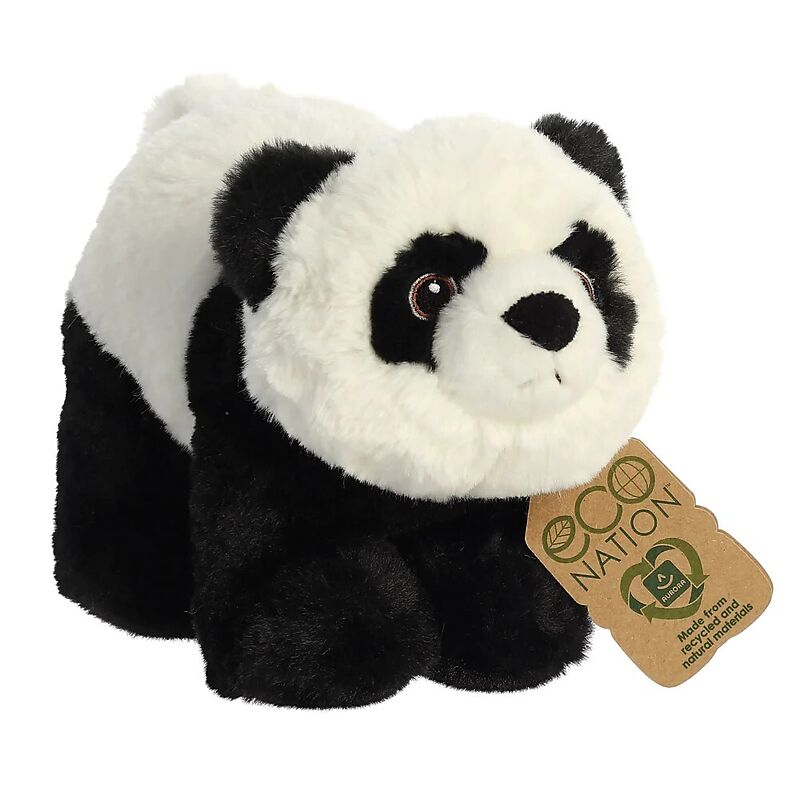 Eco Nation Panda, ca. 23 cm. Bitte entfernen Sie alle nicht angenähten Etiketten und deren Befestigungsteile, bevor Sie diesen Artikel einem Kind geben.