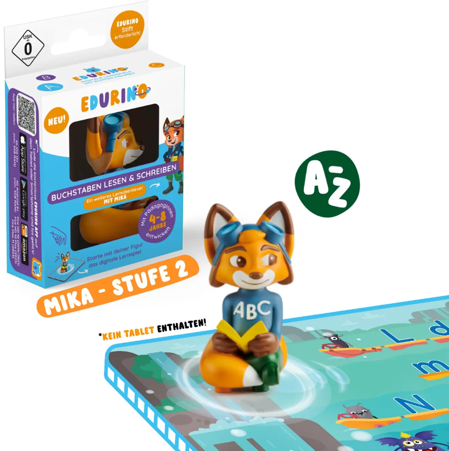 Die Lernfigur Mika schaltet die bunte Welt der Wörter in der Edurino-Lern-App frei - ein spannendes, digitales Lernabenteuer zum spielerischen Lernen von Lesen und Schreiben. - Funktioniert nur mit dem Endurino Eingabestift (separat erhältlich).