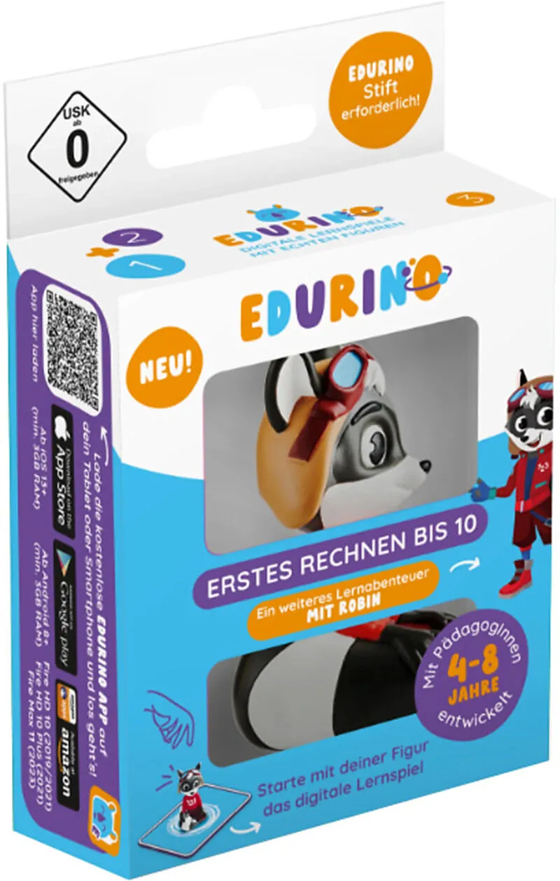 Die Lernfigur Robin 2 schaltet die bunte Welt der Zahlen in der Edurino-Lern-App frei - ein spannendes, digitales Lernabenteuer zum spielerischen Rechnen von 1 bis 10. - Funktioniert nur mit dem Endurino Eingabestift (separat erhältlich).