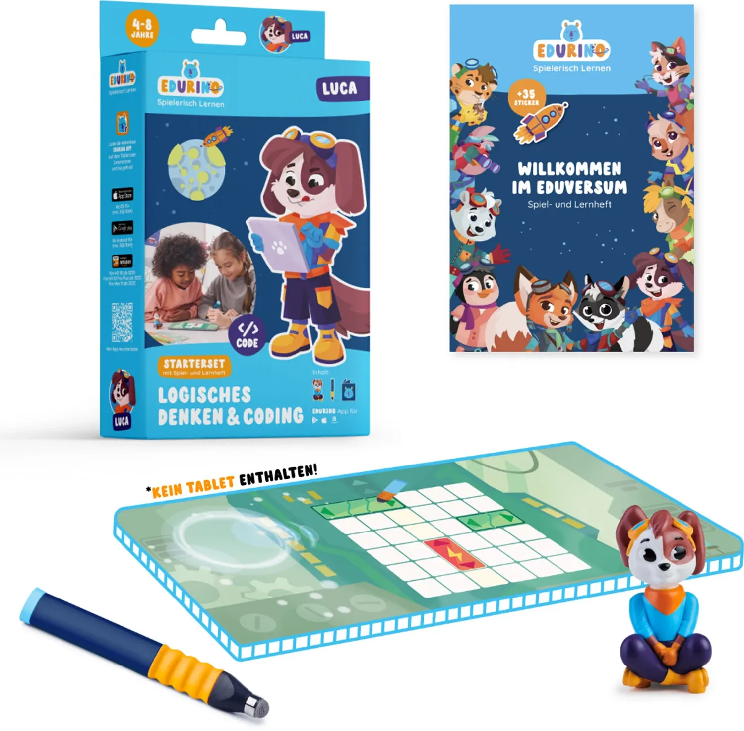 Ein spannendes, digitales Lernabenteuer! Einfach die Edurino-Lern-App herunterladen und die haptische Figur auf das Tablet halten. Mit dem Eingabestiftes wird auf dem Tablet interagiert, ohne das Display zu zerkratzen. - Tablet nicht enthalten.
