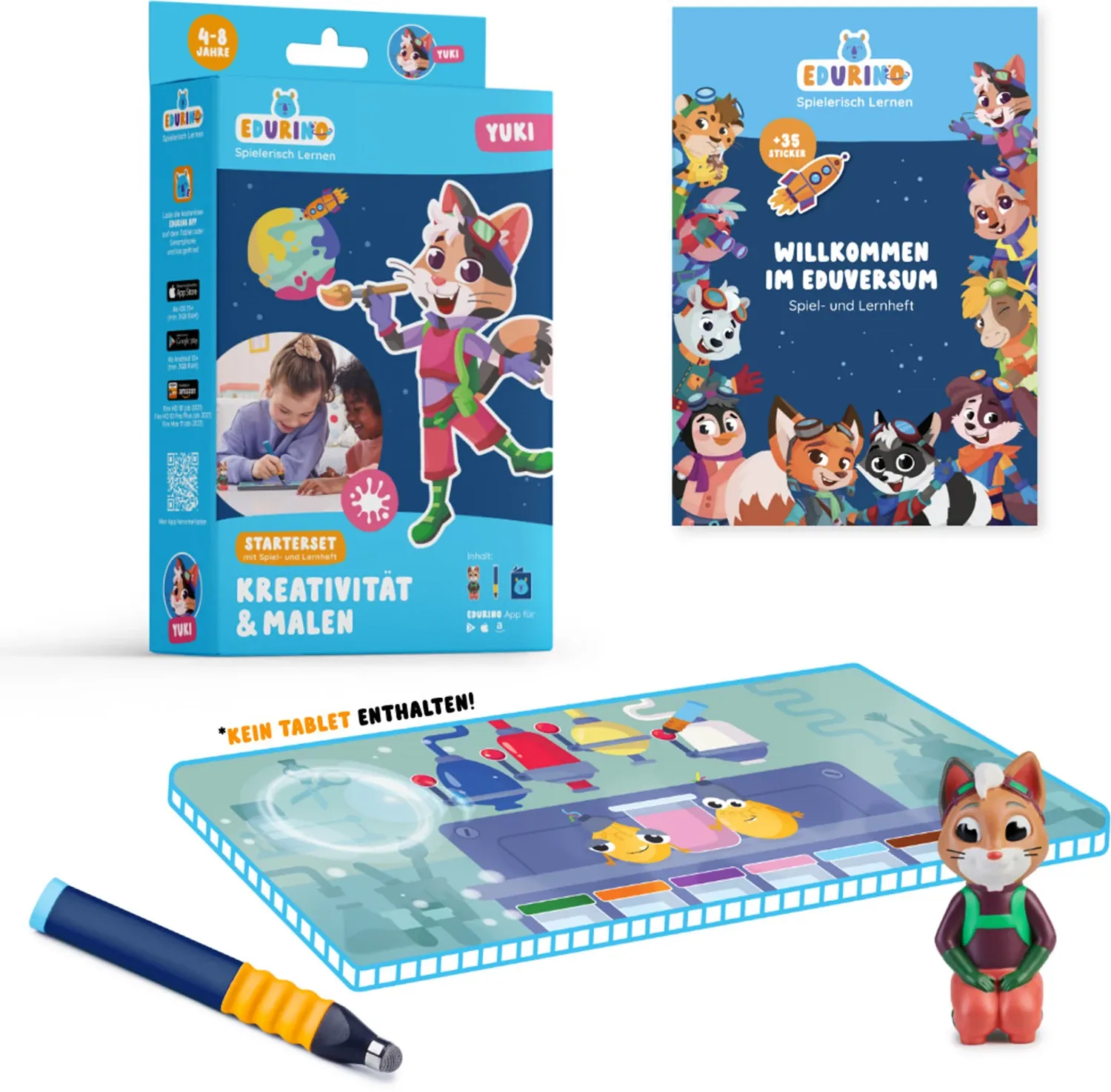 Ein spannendes, digitales Lernabenteuer! Einfach die Edurino-Lern-App herunterladen und die haptische Figur auf das Tablet halten. Mit dem Eingabestiftes wird auf dem Tablet interagiert, ohne das Display zu zerkratzen. - Tablet nicht enthalten.