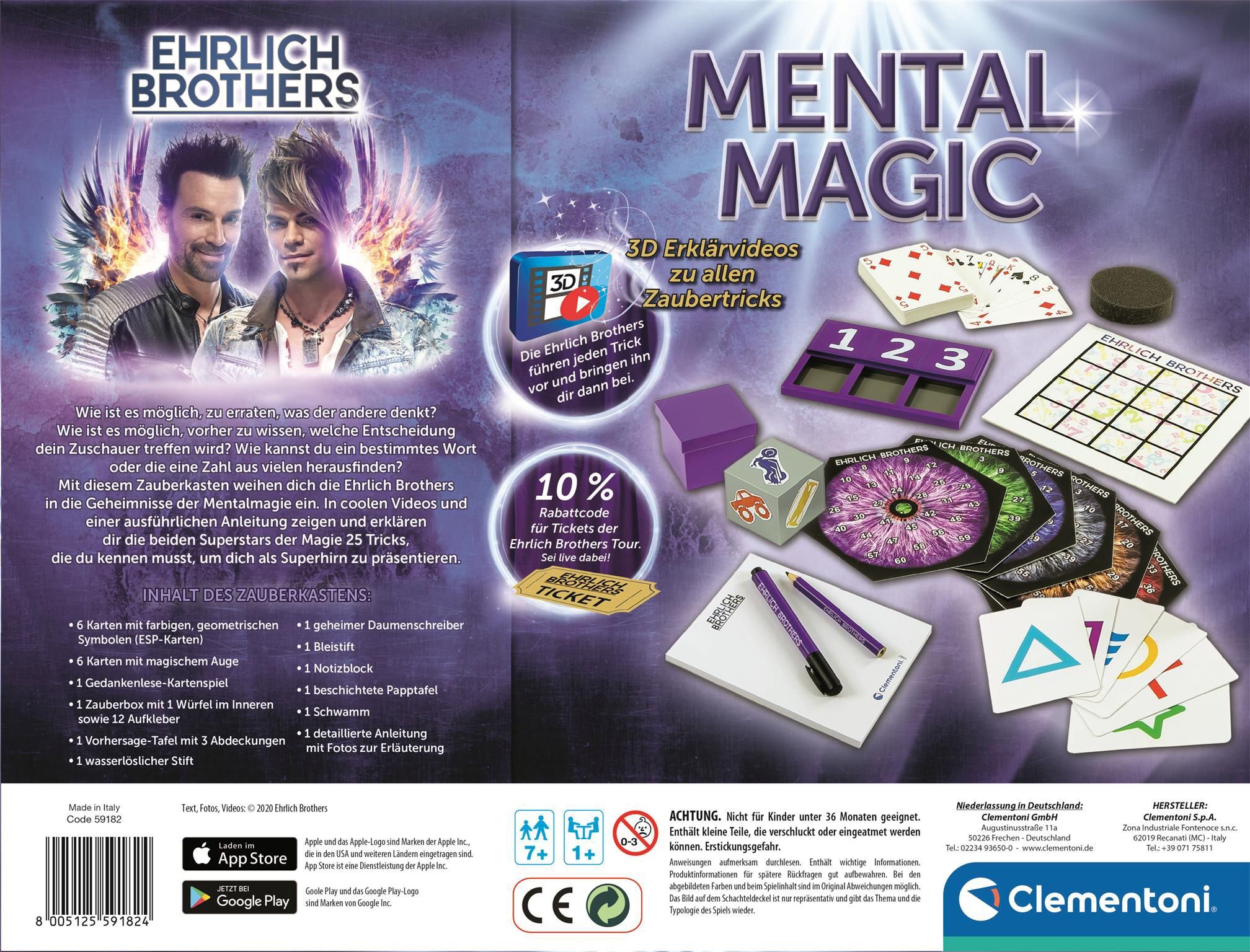 Clementoni Mental-Magie Ein origineller Zauberkasten, mit dem Kinder gemeinsam mit den Ehrlich Brothers alle Geheimnisse eines der derzeitig interessantesten Phänomene entdecken können - der Mental-Magie! Finde die Karte, die sich jemand aus dem Publikum gemer...