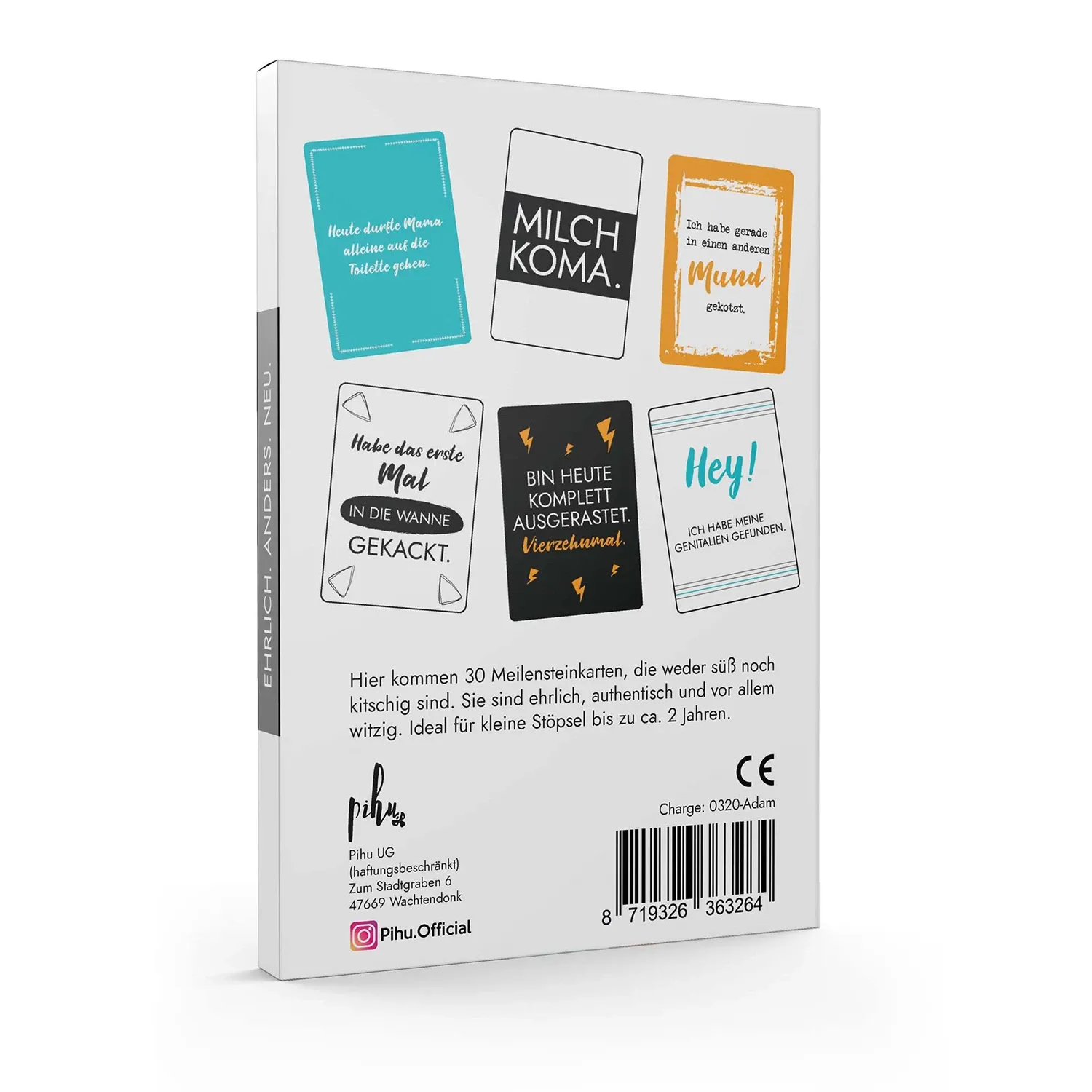 Hier kommen 30 Meilensteinkarten, die weder süß noch kitschig sind. Sie sind ehrlich, authentisch und vor allem witzig. Ideal für kleine Stöpsel bis zu ca. 2 Jahren.