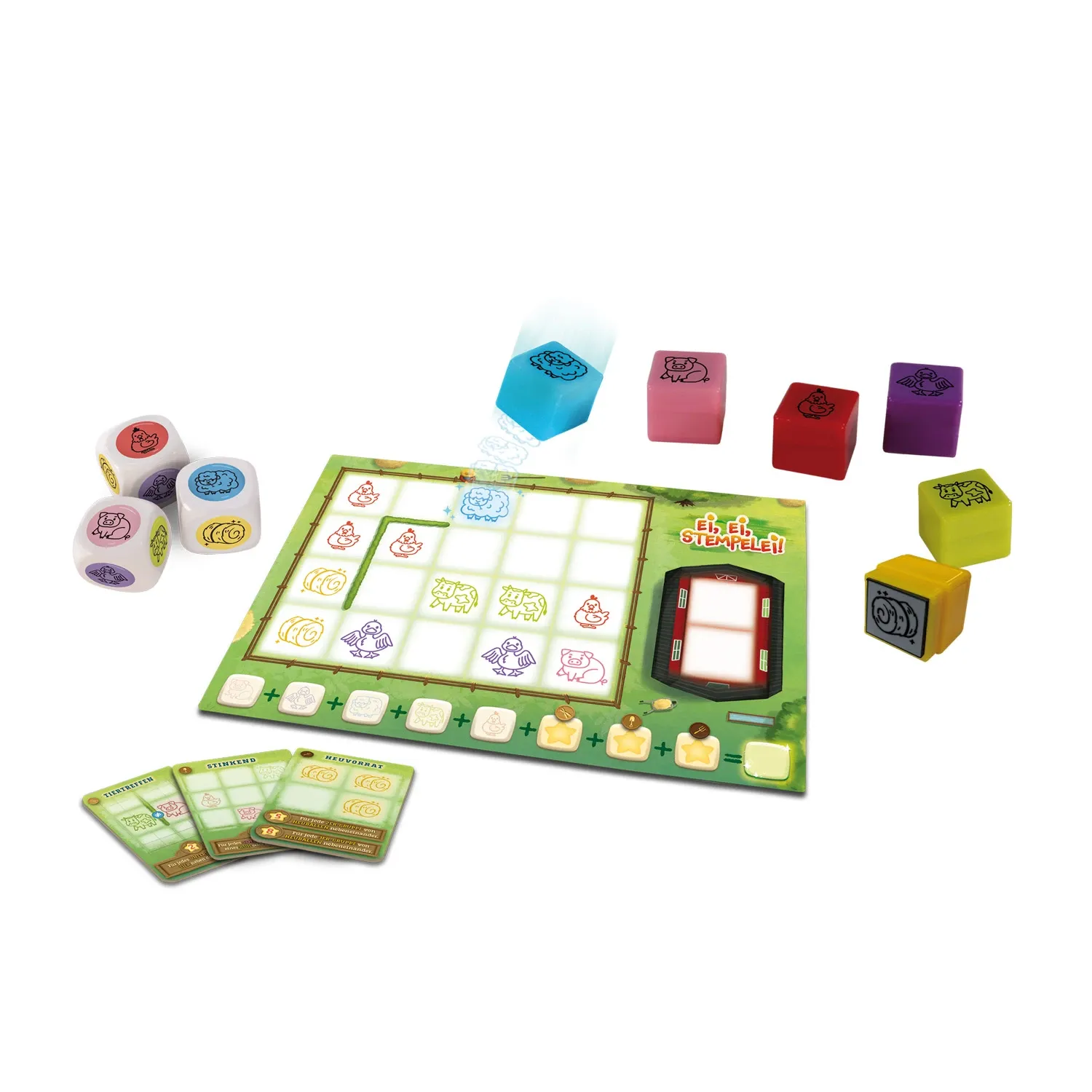 Die Bäuerin Stella braucht Hilfe, um Ordnung auf ihrem Hof zu schaffen. Sie möchte die Tiere so verteilen, dass jede Tierart zufrieden ist. Ei, Ei, Stempelei ist ein lustiges Würfel- und Stempelspiel mit sechs farbigen Stempeln. Wenn du an der Reihe bist, würf...