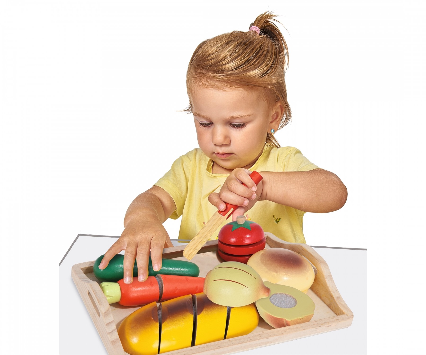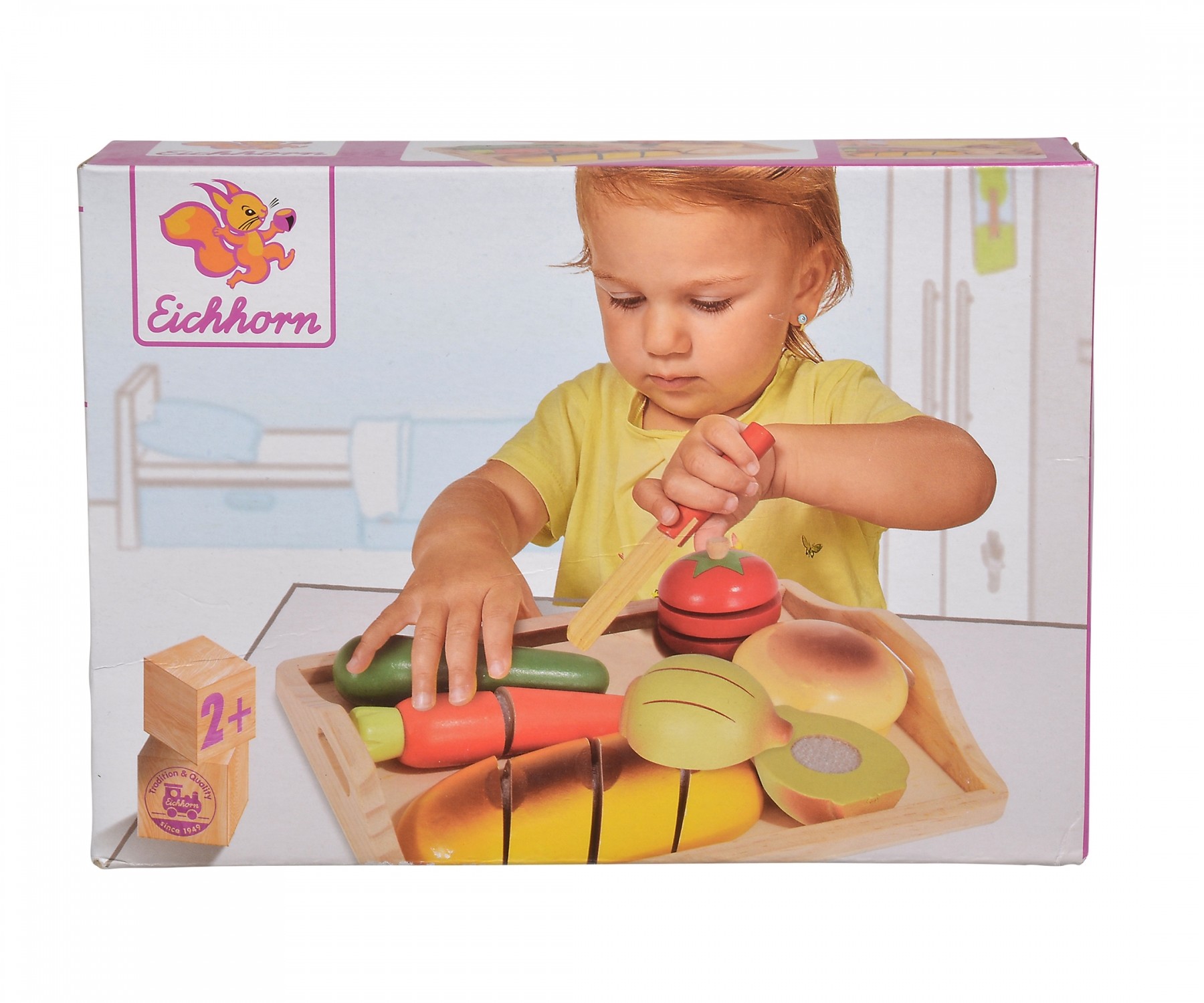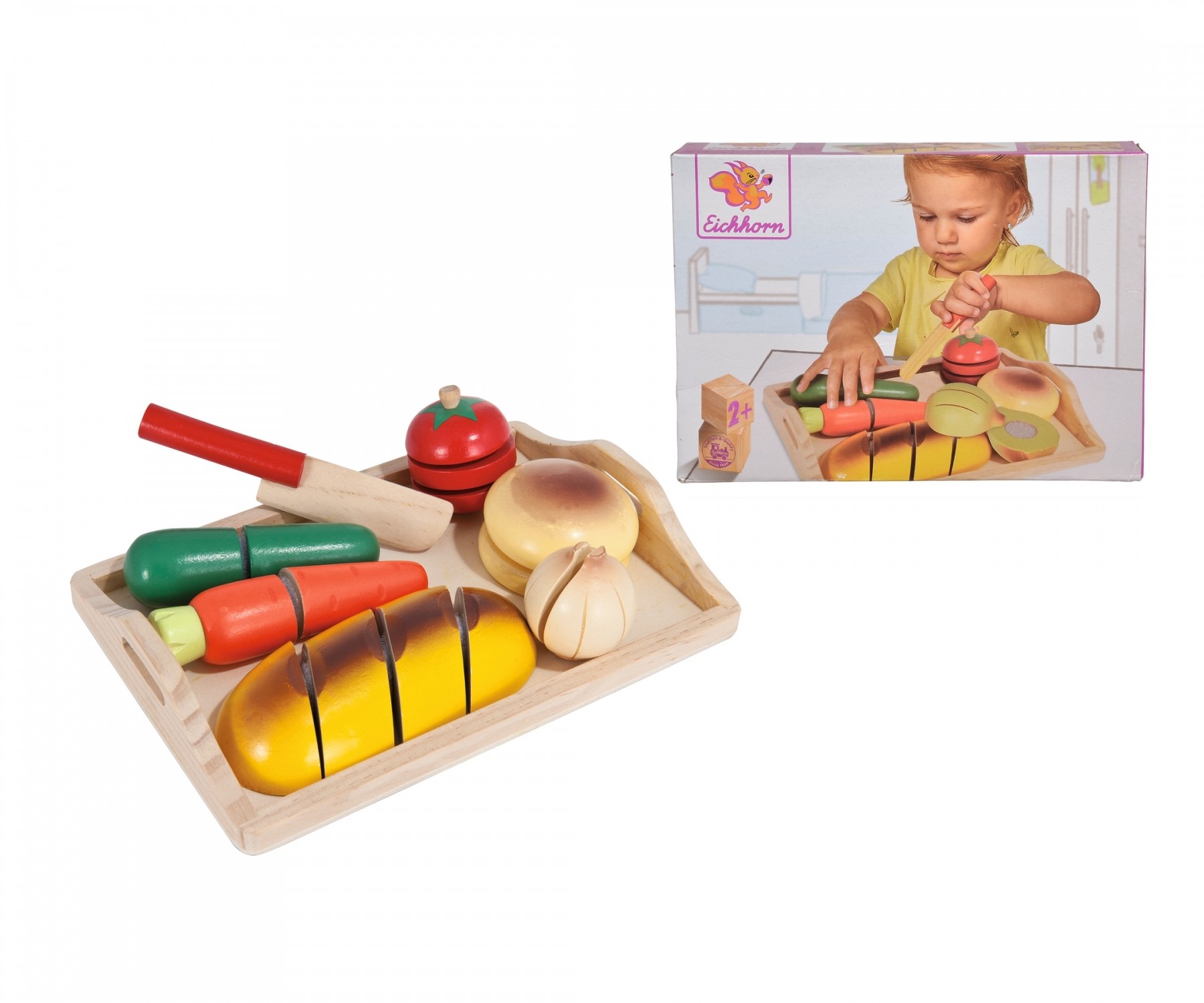Eichhorn Schneidebrett: Mit dem Eichhorn Schneidebrett können die Kleinen die ersten Versuche unternehmen Ihr Essen zu schneiden. Jedes Essenstück besteht aus diversen Teilen, die mit einem Klettverschluss verbunden sind. Mit dem Messer wird die Verbindung gel...