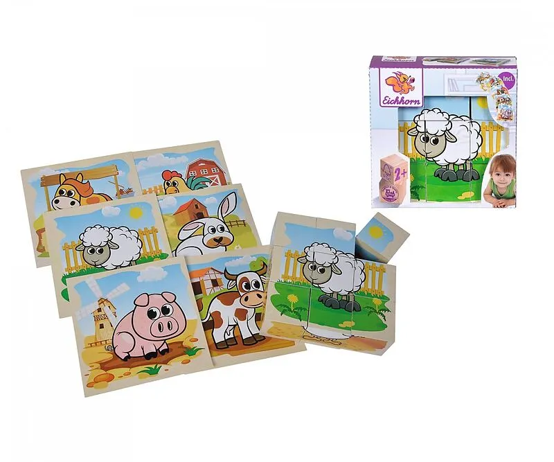Eichhorn Bilderwürfel: Je nachdem wie man die neun Steine dreht entsteht mit den Eichhorn Bilderwürfeln eines der 6 Bauernhof-Tier-Motive. Es kann mit Hilfe der Vorlagemotive ein Bild von einem Schwein, einem Pferd, einem Hahn, einem Schaf, einem Hasen oder ei...