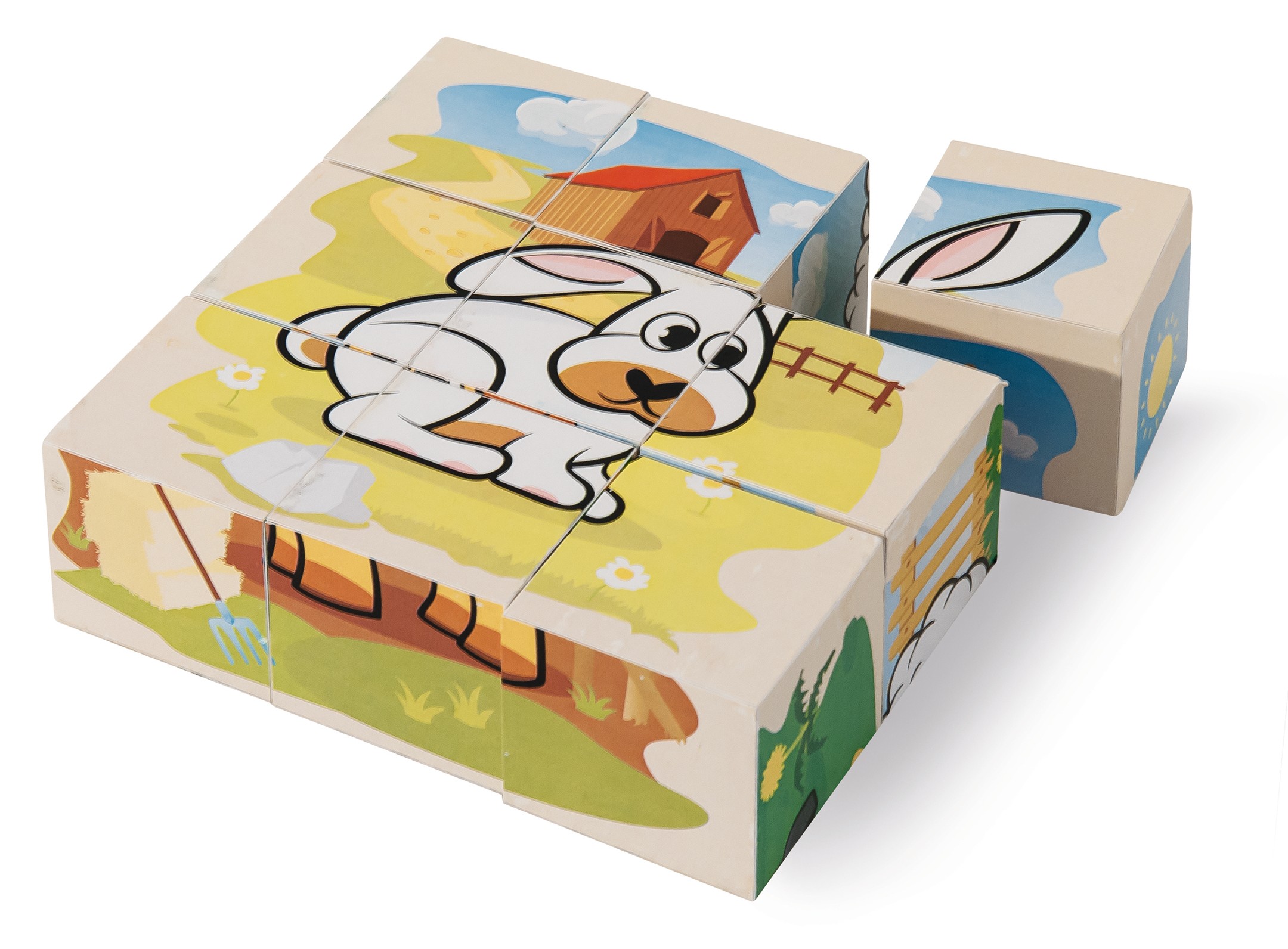 Eichhorn Bilderwürfel: Je nachdem wie man die neun Steine dreht entsteht mit den Eichhorn Bilderwürfeln eines der 6 Bauernhof-Tier-Motive. Es kann mit Hilfe der Vorlagemotive ein Bild von einem Schwein, einem Pferd, einem Hahn, einem Schaf, einem Hasen oder ei...