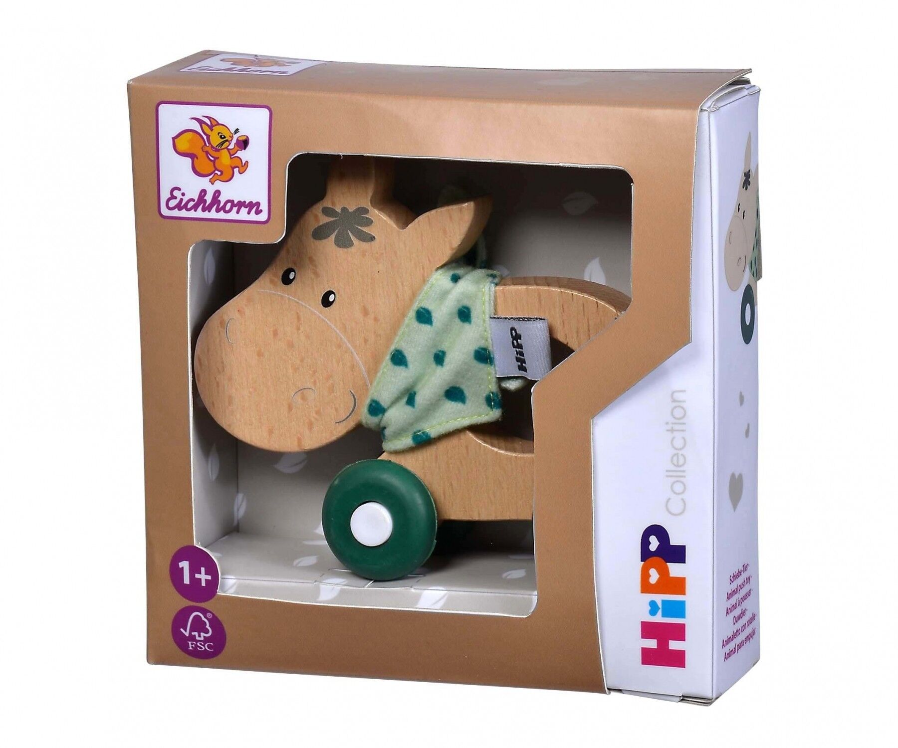 EH Baby HiPP Schiebe-Esel mit Stoff, 12cm, 100% Buchenholz, Silkon, 100% PL, TB/Einlage, 1J+