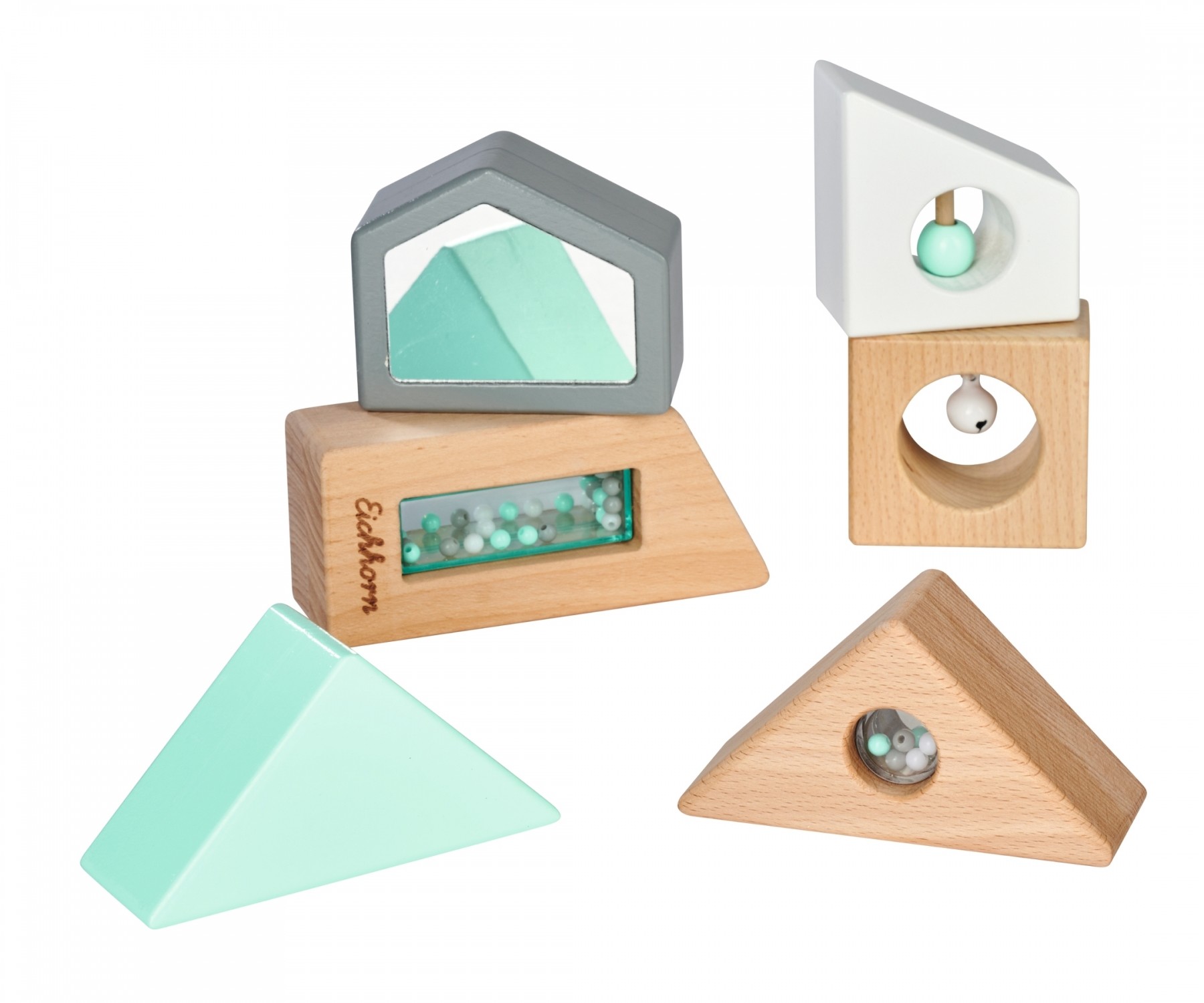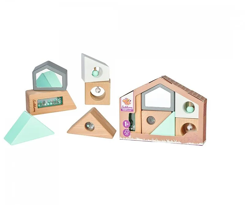 Eichhorn BabyPure, Sensorik Soundbausteine: Mit Eichhorn BabyPure kann das Baby naturverbunden und nachhaltig die Welt erkunden. Die sechs stapelbaren Sensorik Soundbausteine von Eichhorn haben verschiedene Farben und Formen. Die Steine sind mit Kügelchen, ein...
