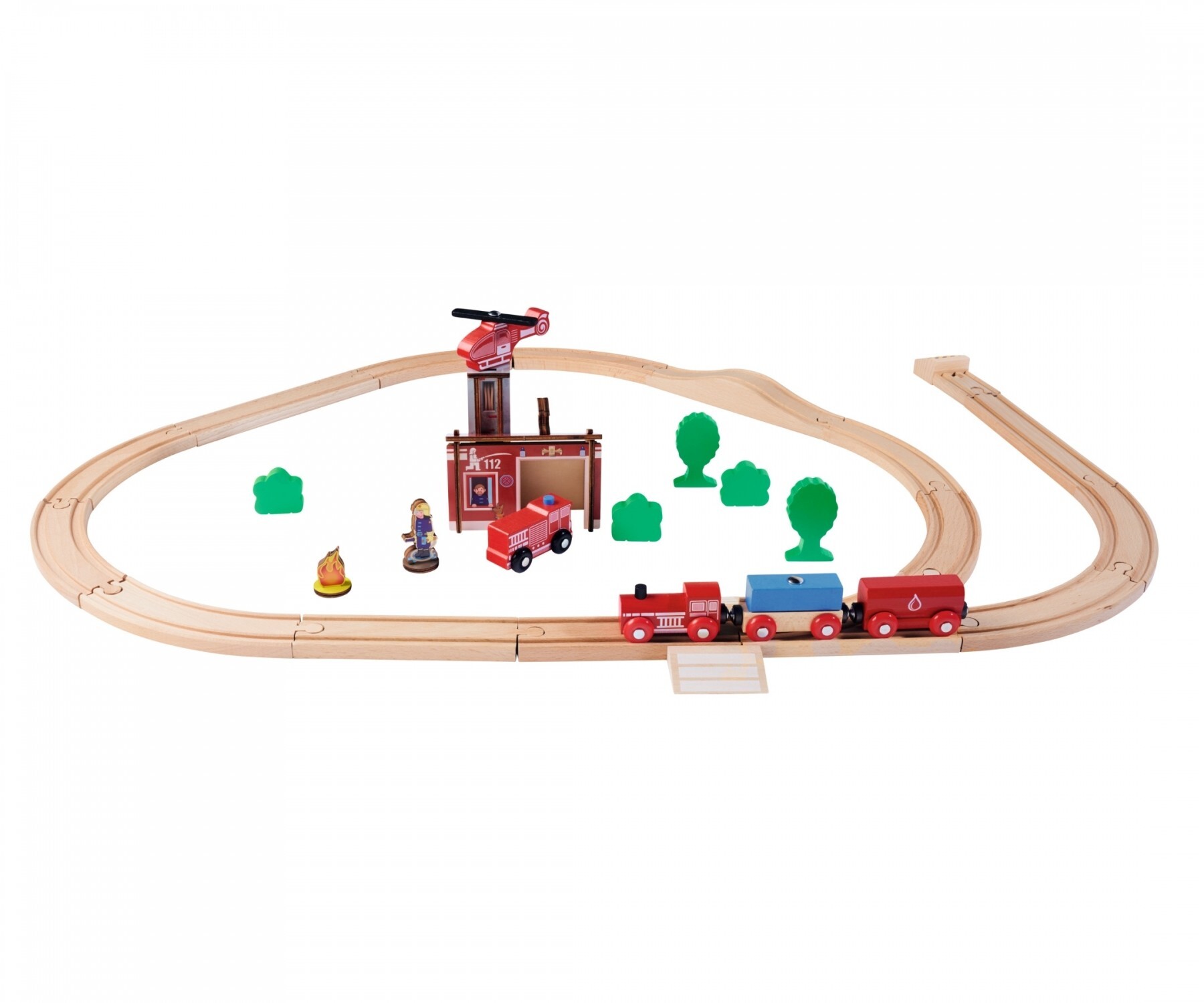 Eichhorn Bahn, Feuerwehrset: Mit der 33-teiligen Eichhorn Feuerwehr Schienenbahn können die Kleinen mit der Feuerwehrlok und zwei Wagons ihre selbsterschaffene Welt erkunden. Mit Kurven, Geraden und Wellenschiene kann eine Fahrstrecke von 295cm nach Belieben f...