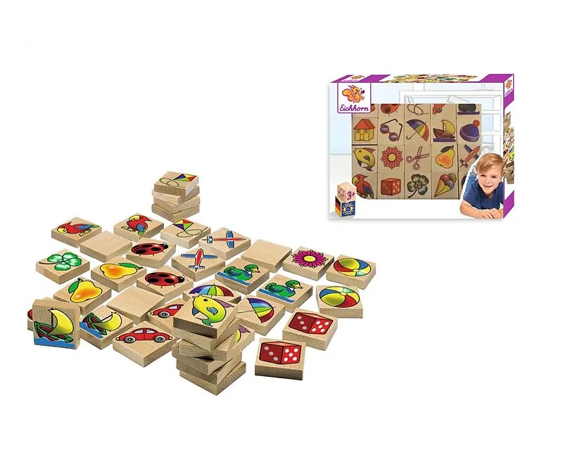 Eichhorn Bilder-Memo Spiel: Merke dir unter welchen Bausteinen sich die verschiedenen Motive verstecken. Jeder Spieler darf pro Runde zwei Spielsteine aufdecken. Wenn ein Pärchen umgedreht wird, darf der Spieler es behalten. Wer am Ende den höchsten Pärchen-St...