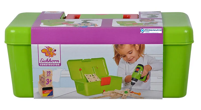 Eichhorn Constructor, Werkzeugbox: Die Werkzeugbox für alle Constructor-Baumeister! In dem Werkzeugkoffer befindet sich nicht nur ein Kompakt-Schrauber mit inklusiven Bits zum Wechseln, sondern auch zahlreiche Constructorbauteile. Das Zusammenfügen fördert und...
