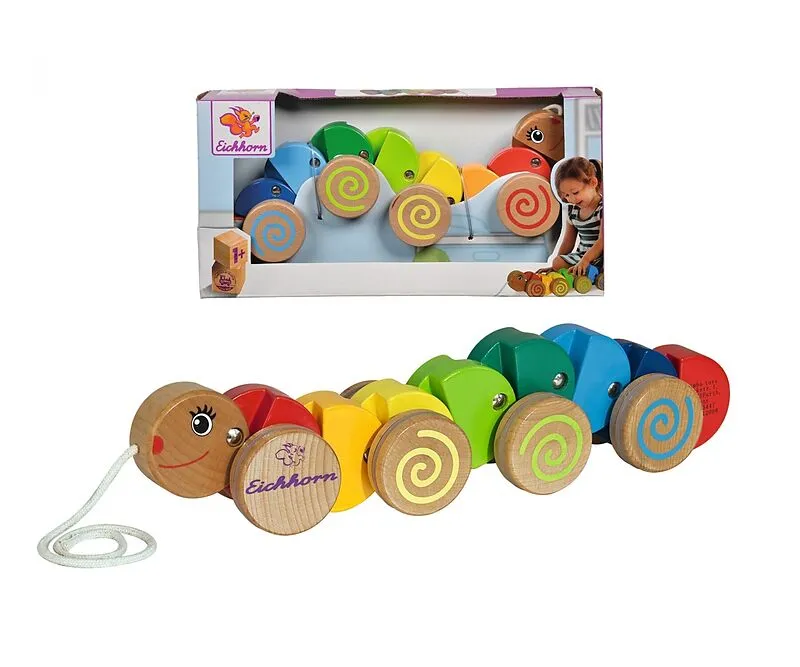 Die 32cm lange Nachziehraupe von Eichhorn folgt kleinen Lauflernern auf Schritt und Tritt. Warme Farben und ein fröhliches Gesicht machen die Raupe zu einem liebenswerten Begleiter für Zuhause und unterwegs. Die Raupe animiert die Kleinen sich zu Bewegen und f...