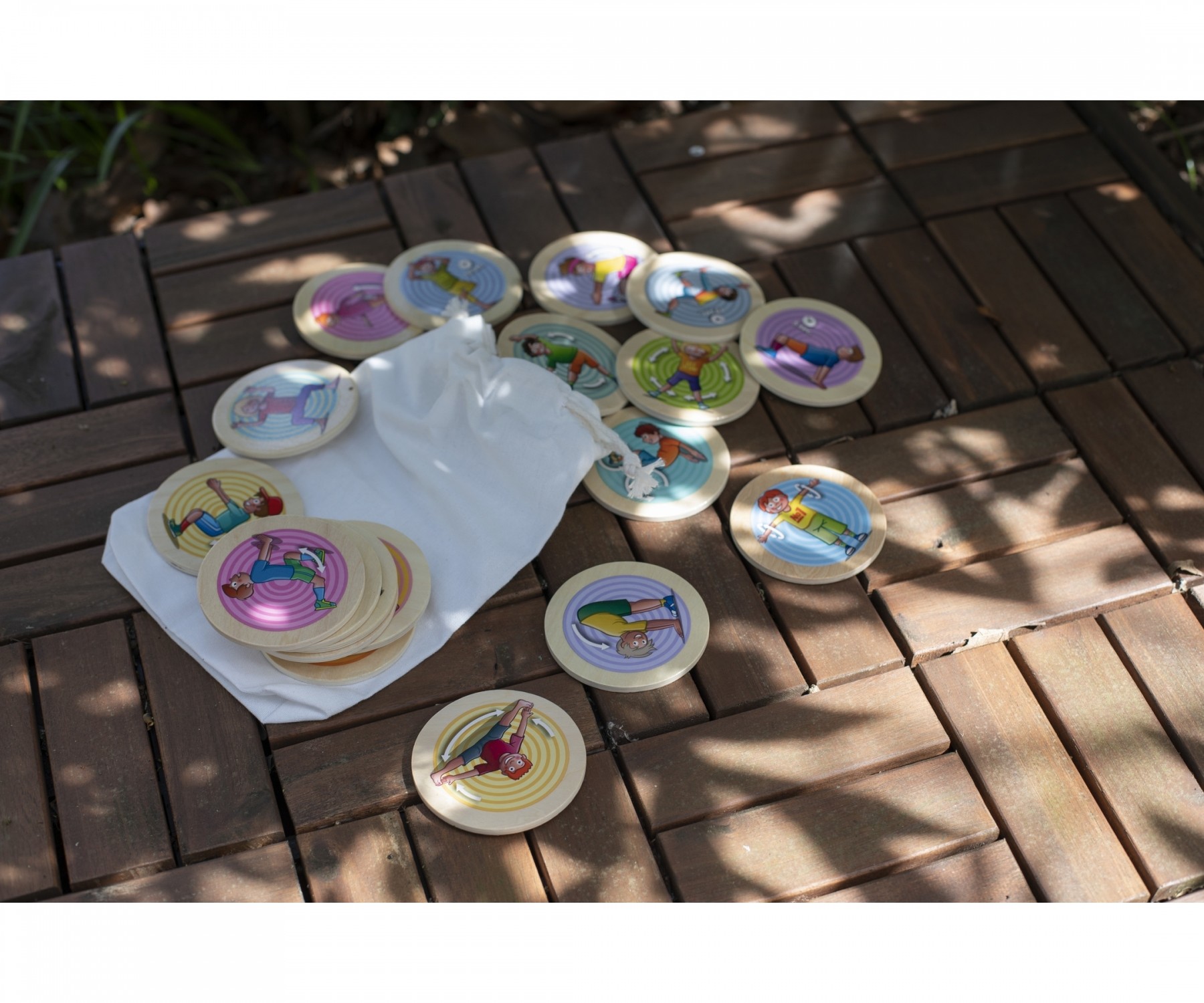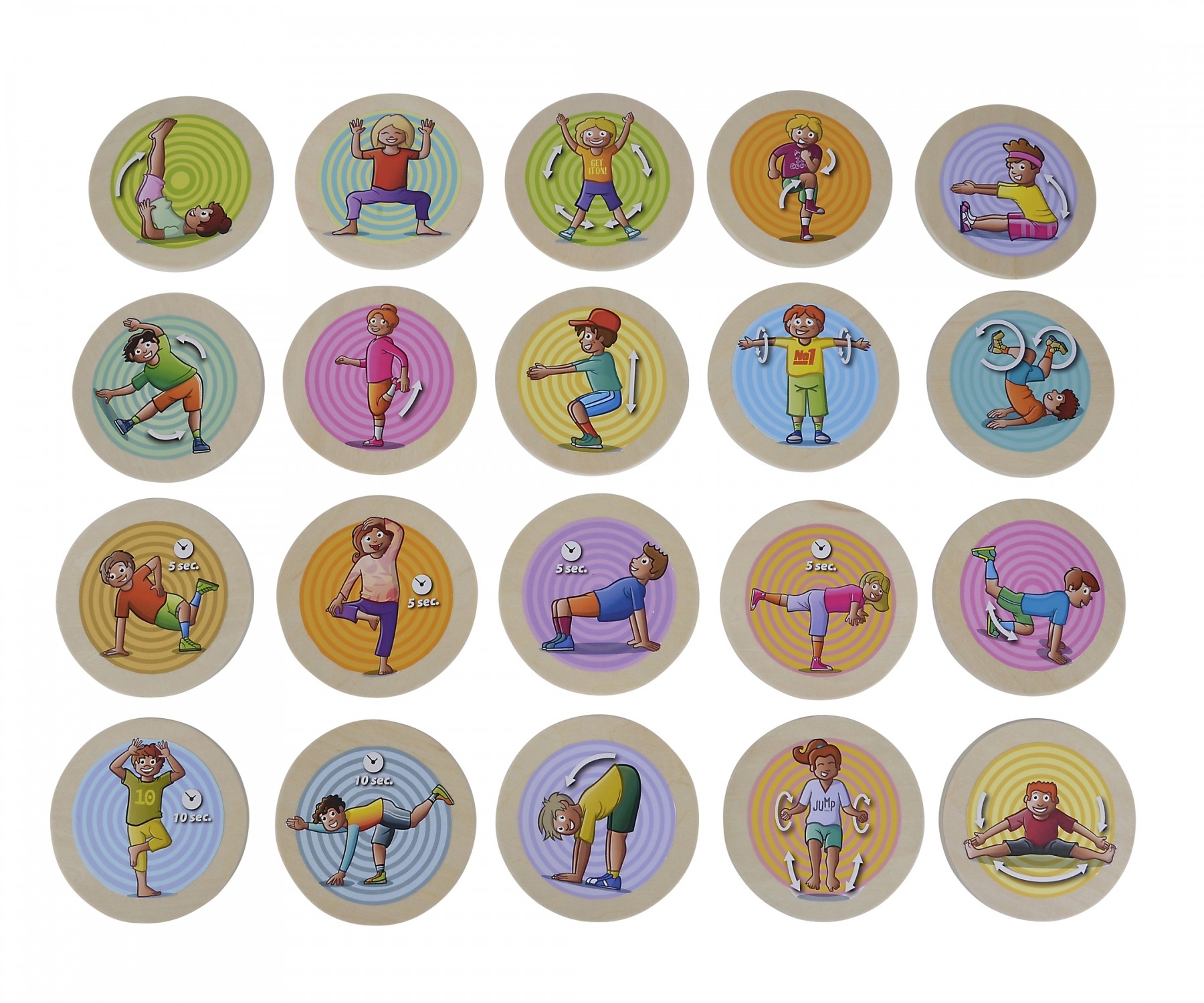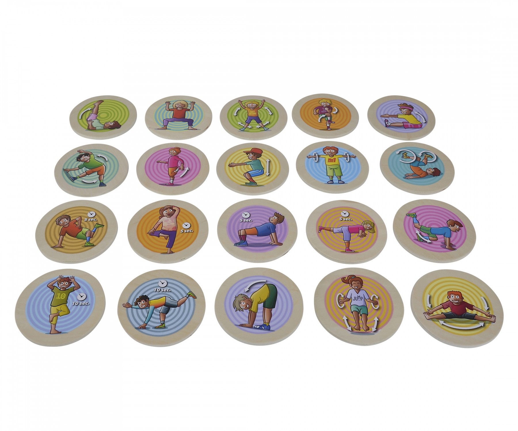 Das Eichhorn Bewegungsspiel besteht aus 20 bunten Spielscheiben aus Holz, die mit lustigen Motiven die Kleinen zum Bewegen, Tanzen, Turnen und Auslassen animieren. Das Set verbindet damit Spiel und Sport. Die Spielscheiben deuten den Kindern bestimmte Übungen ...