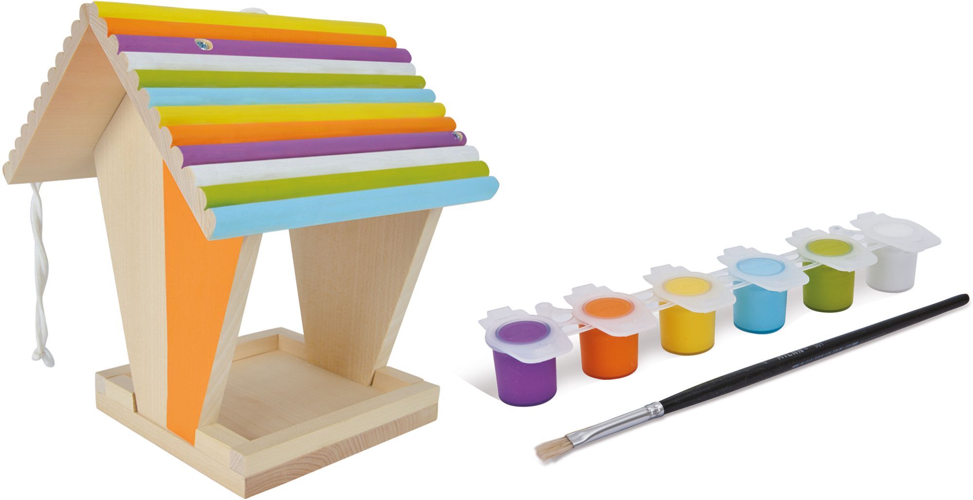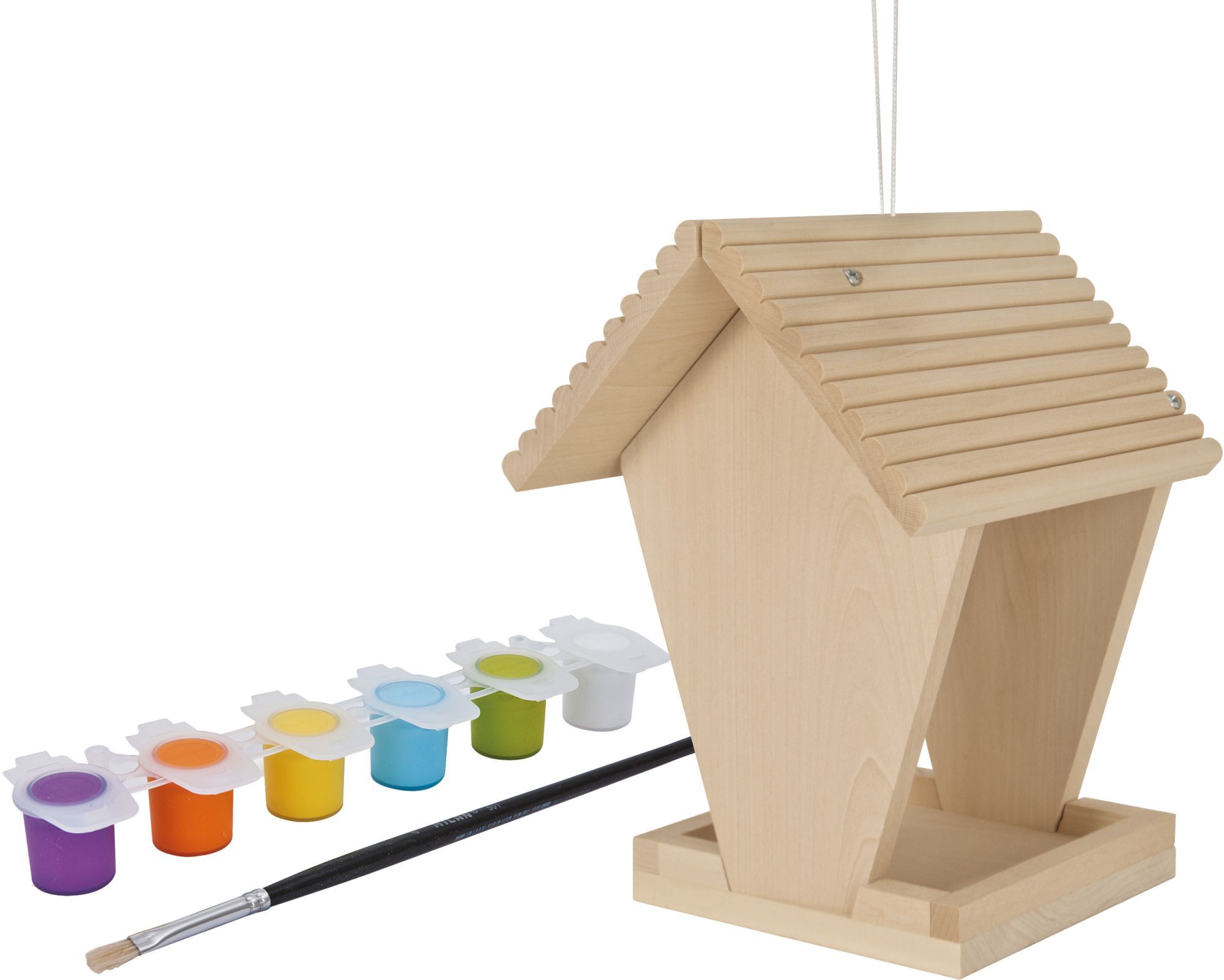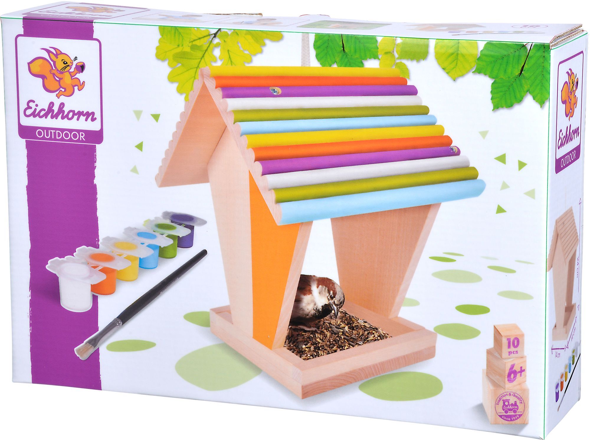 Outdoor, Futterhaus Dieses niedliche kleine Futterhaus mit den Maßen 14x14x24cm ist ein Hingucker an sich, aber noch schöner wird es wenn das Haus angemalt undverziert wird. Im Set sind die Einz elteile des Futterhauses enthalten, sowie die dazu passenden Schr...