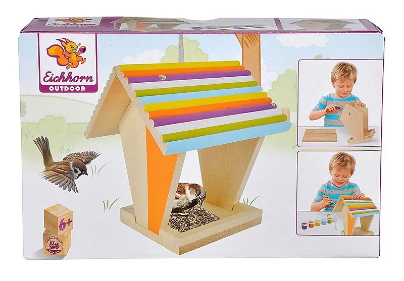 Outdoor, Futterhaus Dieses niedliche kleine Futterhaus mit den Maßen 14x14x24cm ist ein Hingucker an sich, aber noch schöner wird es wenn das Haus angemalt undverziert wird. Im Set sind die Einz elteile des Futterhauses enthalten, sowie die dazu passenden Schr...