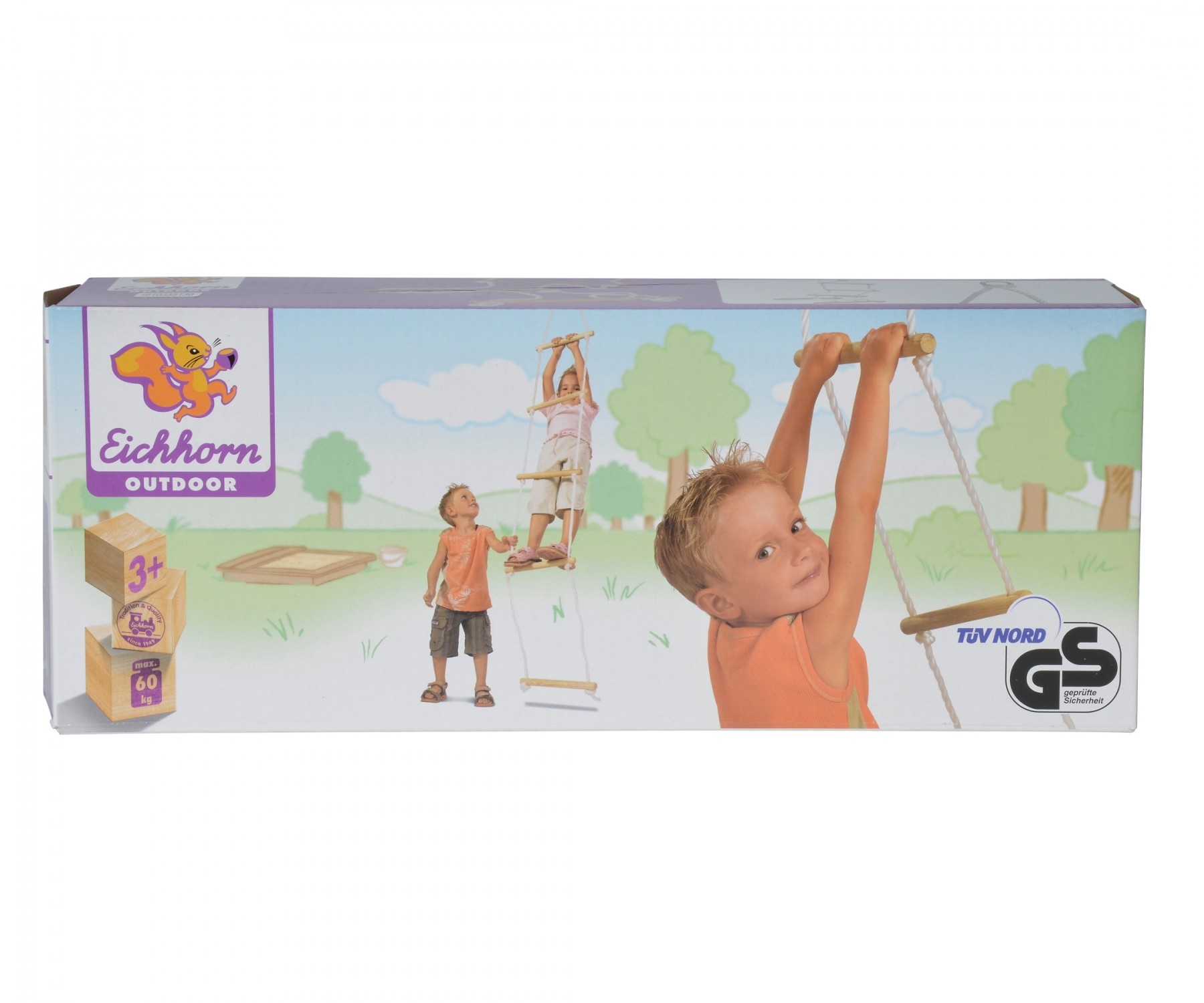 Für ausgiebigen Kletterspaß im Freien sorgt die Strickleiter mit 5 Sprossen aus hochwertigem und robustem Holz. Die Länge der Strickleiter beträgt 170 cm. Sie ist bis zu 60 kg belastbar und TÜV/GS geprüft. 5 Sprossen, TÜV/GS geprüft, bis 60kg belastbar, L:170c...
