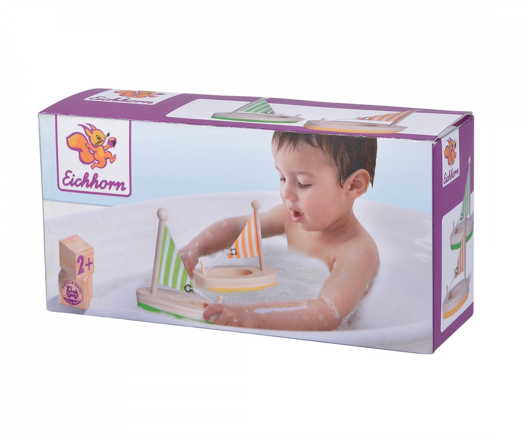 Eichhorn Segelboote: Diese zwei schwimmfähigen Segelboote aus Holz erfreuen kleine Wasserratten beim Planschen - ob in der Badewanne oder im Planschbecken. Mit den Segelbooten wird die Feinmotorik geschult. Die 11cm großen Boote passen in jede Badetasche. Für ...