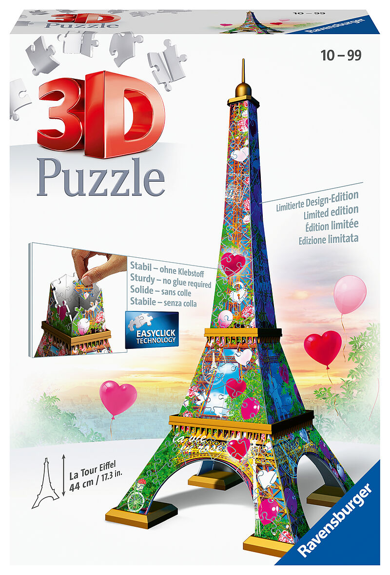 Eiffelturm Love EditionEin Stück Paris für zuhause.Sehnsucht nach der Stadt der Liebe Dann erschaffen Sie sich Ihre eigene kleine Welt an der Seine! Mit dem Eiffelturm im romantischen Love Edition Design puzzeln Sie im Nu ein Bauwerk zum Verlieben.