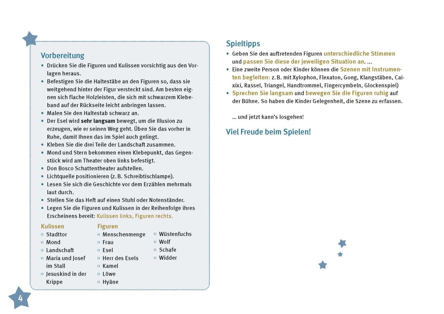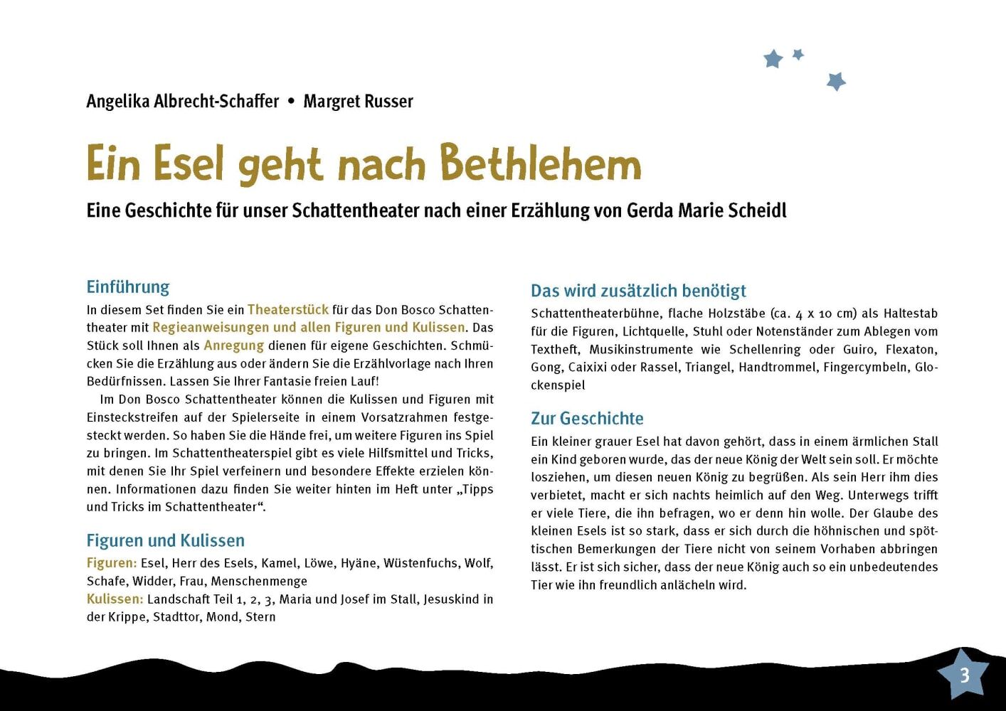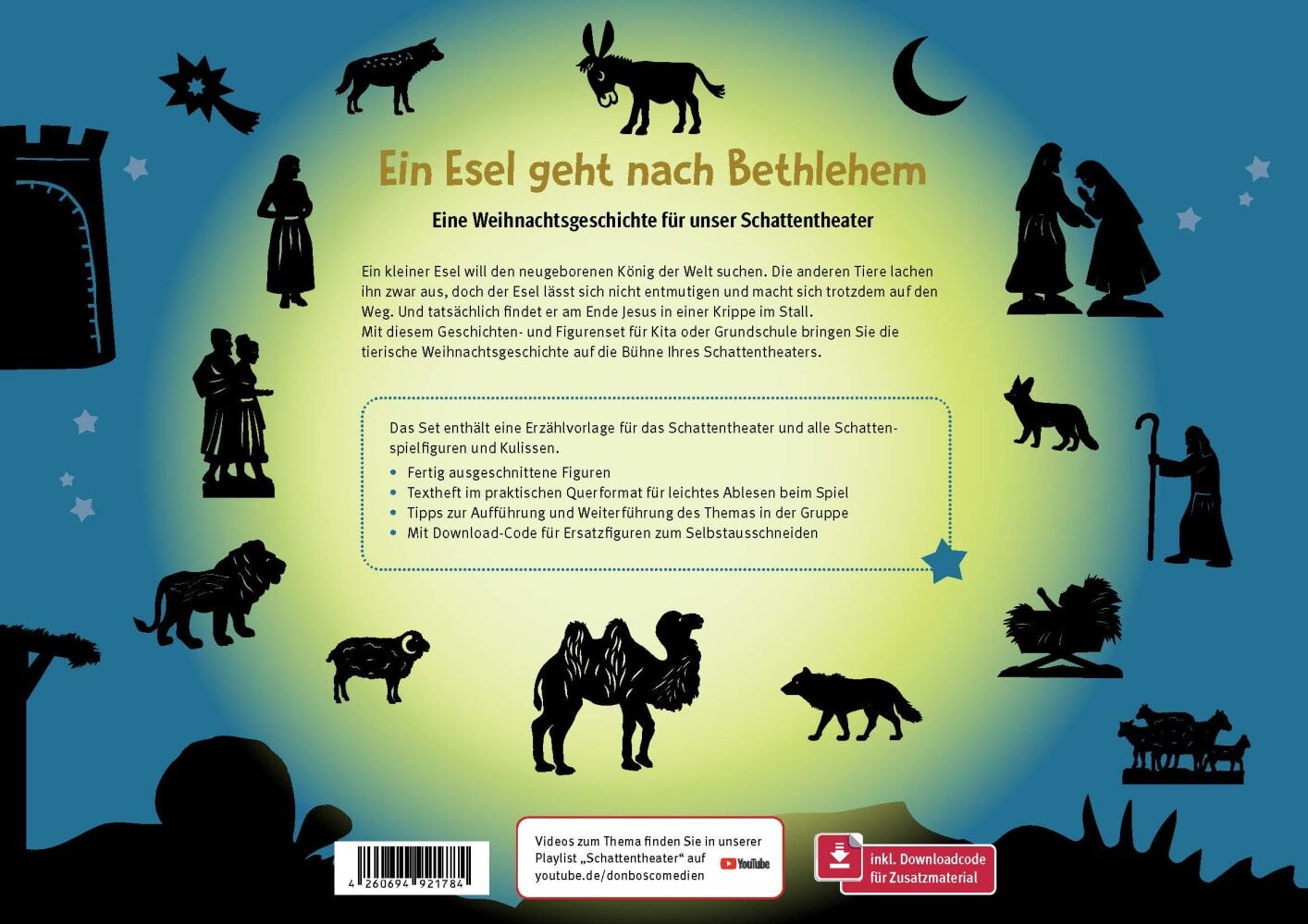 Schattenfiguren, Vorlagen und Kulissen für ein Schattenspiel: Weihnachten aus Sicht des Esels. Jesus Geburt für Kinder ab 3 mit dem Schattentheater erleben. Mit dem Schattentheater Weihnachten erwarten: Ein Esel auf großer Reise Als der kleine Esel von Bethleh...