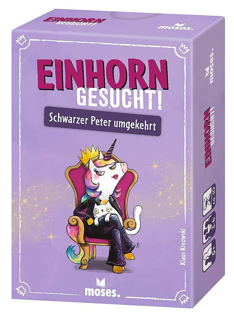 Das spannende Kartenspiel für Einhornfans! Bei EINHORN GESUCHT! spielt ihr nach den Regeln wie bei Schwarzer Peter, nur dass es hier umgekehrt ist. Die Einhornkönigin wollt ihr als letzte Karte auf der Hand haben um das Spiel zu gewinnen. Klaue den Anderen Kar...
