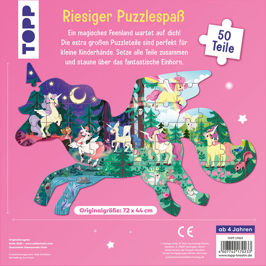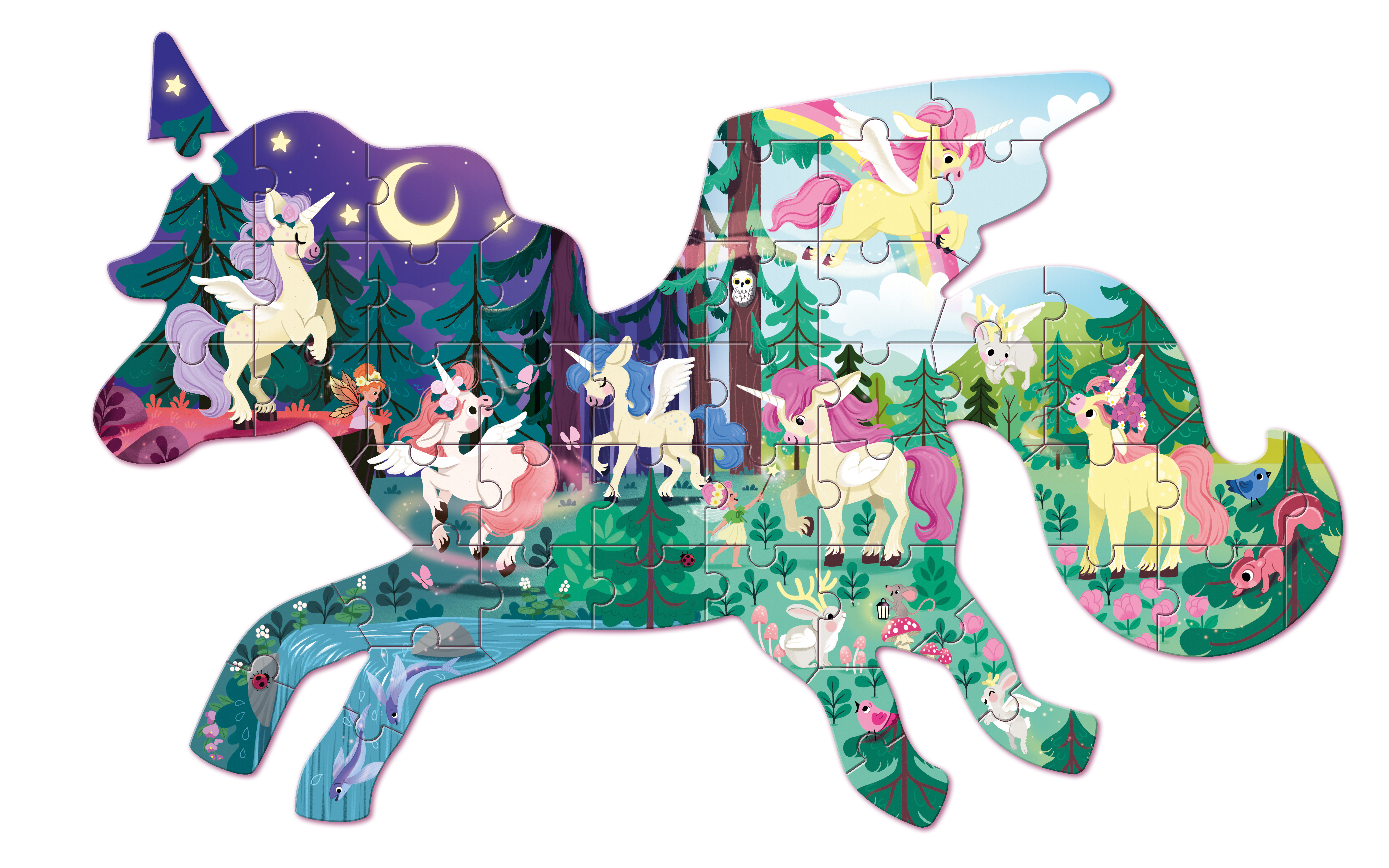 Entdecke eine zauberhafte Welt voller Einhörner, Feen und niedlicher Waldbewohner! Dieses märchenhafte Einhorn-Puzzle begeistert Einhorn-Fans mit seiner spektakulären Form: Das fertige Puzzle zeigt ein wunderschönes Einhorn und wird so zum echten Highlight im...
