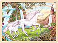 Ein märchenhaftes Einlegepuzzle mit 48 Puzzle-Teilen: Einhörner, Regenbogen und Märchenschloss: was kannst du noch alles entdecken?