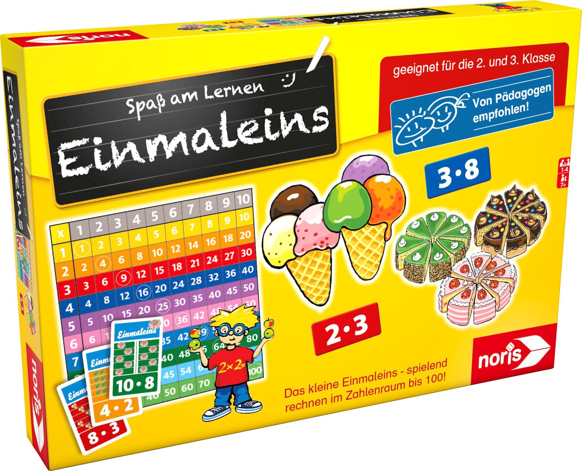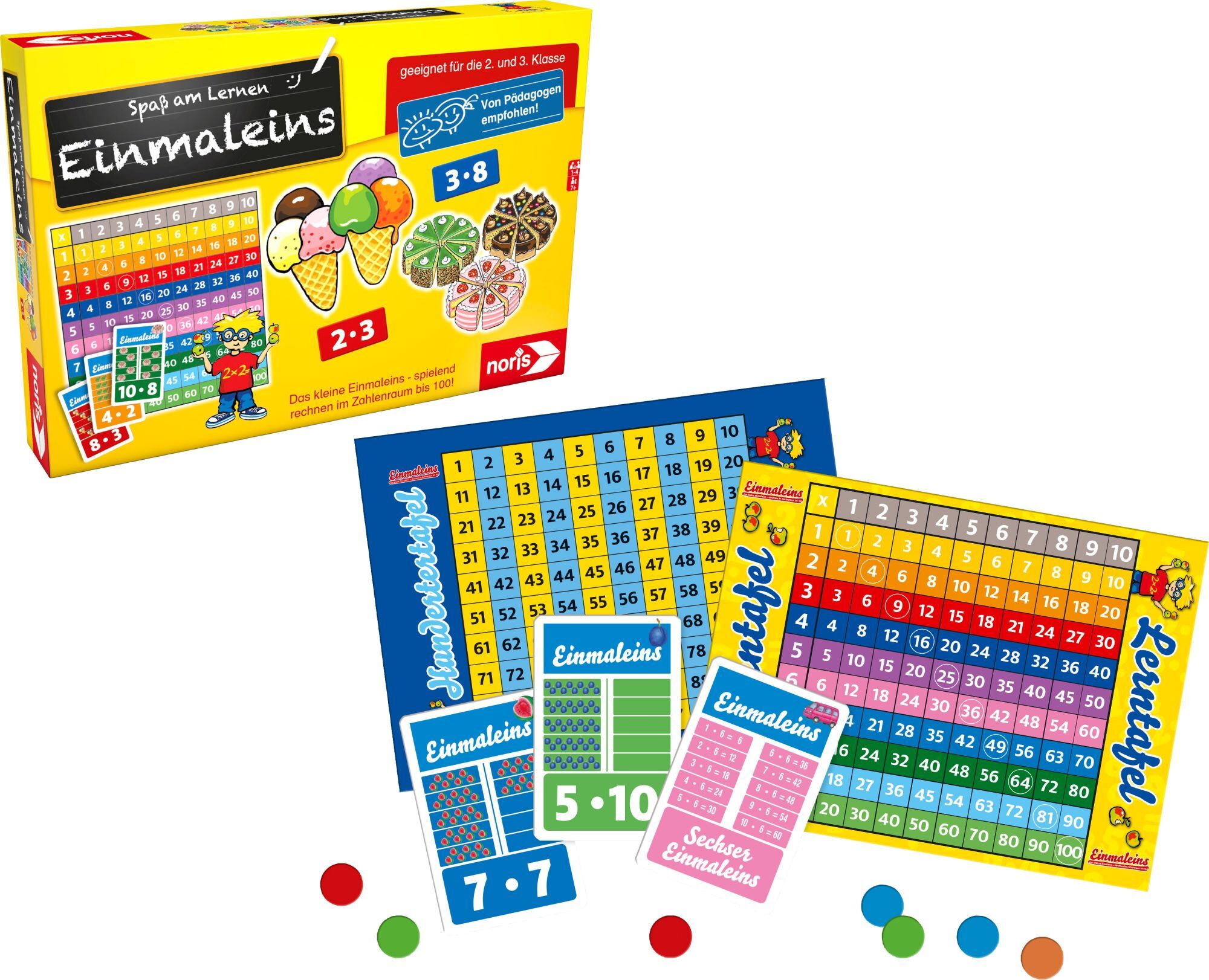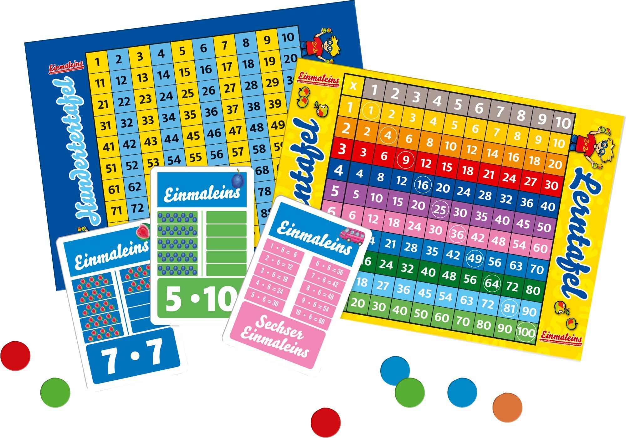 Einmaleins In diesem Spiel lernen die Kinder in der ersten Phase, der Lernphase, die zehn Einmaleinssätze auf der großen Einmaleins-Tafel ganz spielerisch: Mit Hilfe der Hunderter-Tafel kann das Ergebnis sofort überprüft werden. In der Anwendungsphase zieht de...