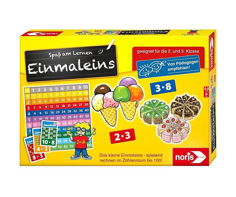 Einmaleins In diesem Spiel lernen die Kinder in der ersten Phase, der Lernphase, die zehn Einmaleinssätze auf der großen Einmaleins-Tafel ganz spielerisch: Mit Hilfe der Hunderter-Tafel kann das Ergebnis sofort überprüft werden. In der Anwendungsphase zieht de...