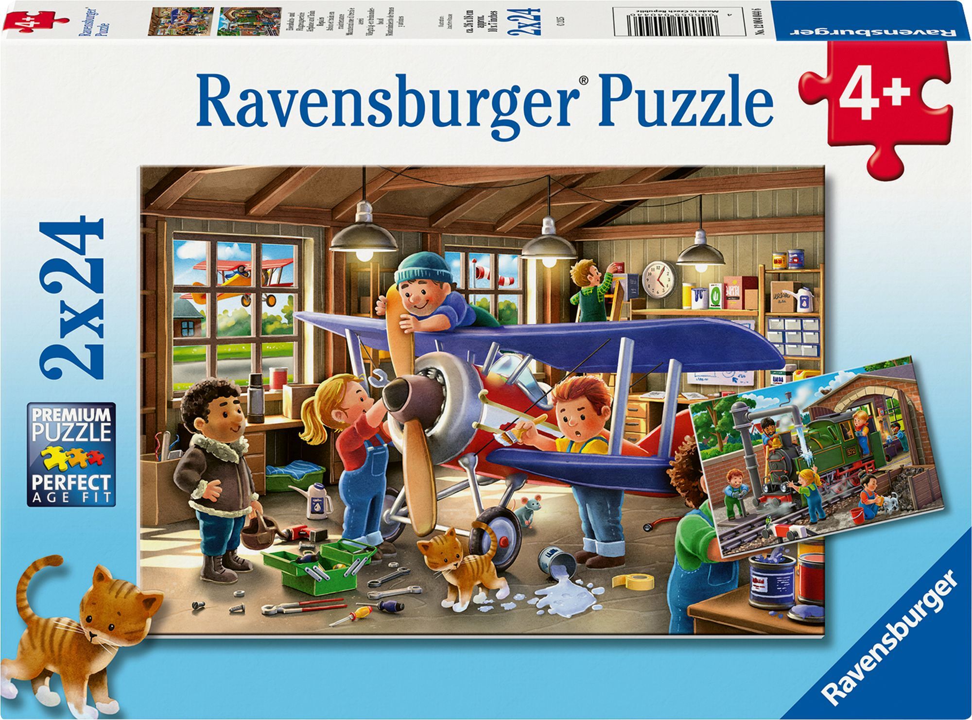 Ravensburger Kinderpuzzle - 12004044 Eisenbahn- und Flugzeugservice - Puzzle für Kinder ab 4 Jahren, mit 2x24 Teilen Egal ob Pferd oder Kätzchen, Bagger oder Feuerwehrauto - die farbenfrohen Motive der Ravensburger Puzzlesets 2x24 Teile begeistern Mädchen und ...