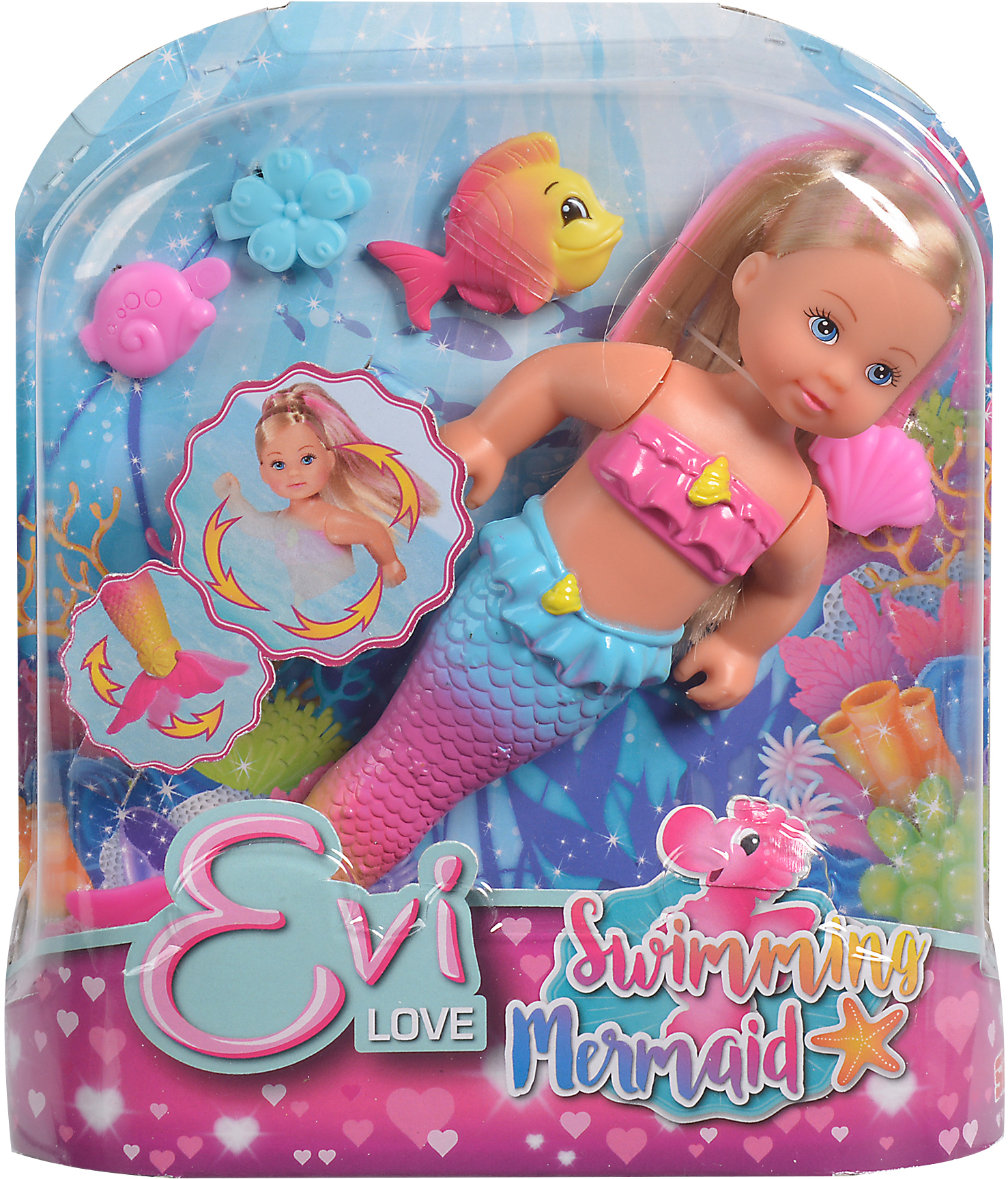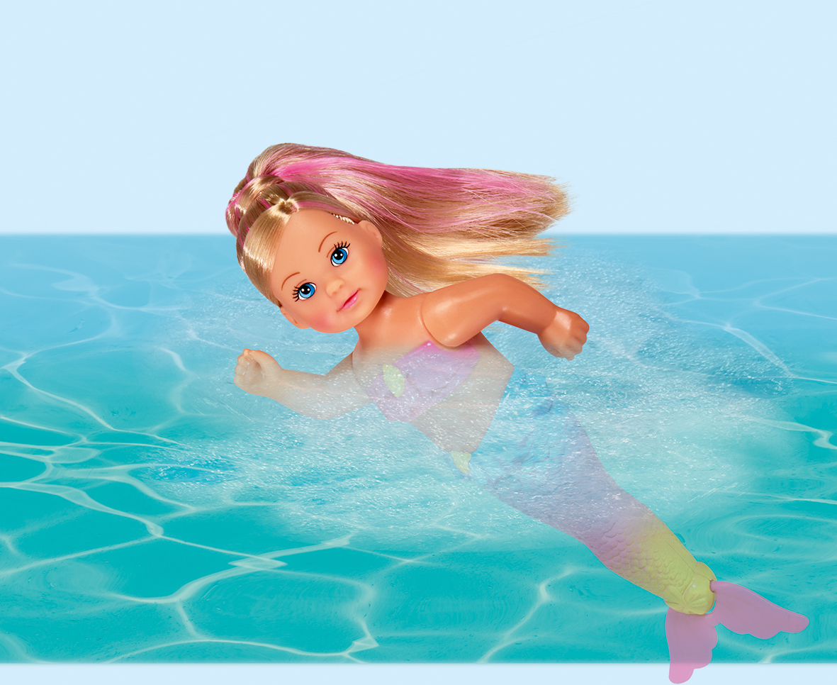 Evi Love Swimming Mermaid Evi LOVE erkundet als kleine Meerjungfrau die Unterwasserwelt und kann richtig schwimmen. Begleitet wird sie dabei von ihrem kleinen Unterwasserfreund, einem süßen Fisch. Ihre Haare schmücken tolle bunte Haarclips. Evi LOVE Swimming M...