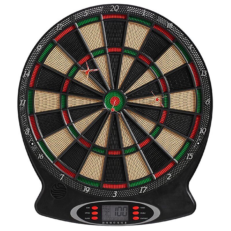Dartscheibe LONDON, elektronische Dartscheibe, 18 Spiele mit 159 Varianten, für 1-8 Spieler. LCD-Anzeige. 6 Dartpfeile und 6 Ersatzspitzen. Batteriebetrieb (3x AAA Batterien, nicht enthalten).
