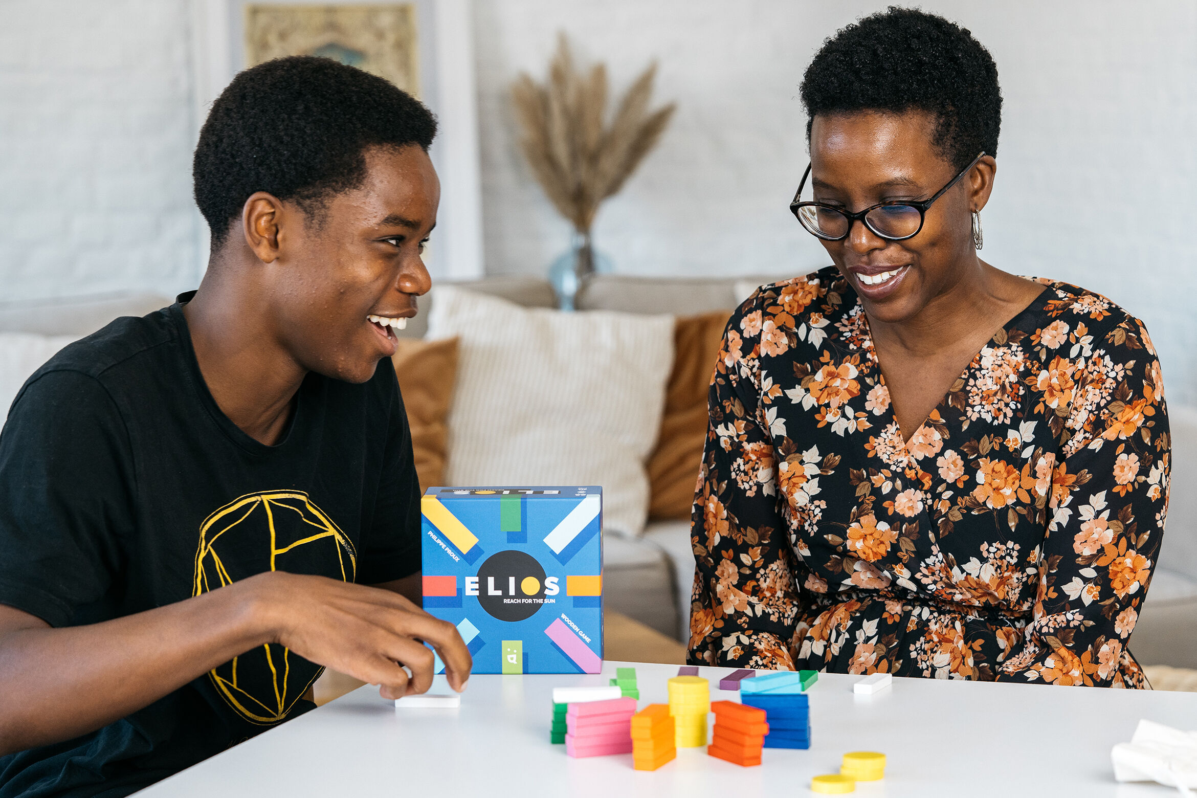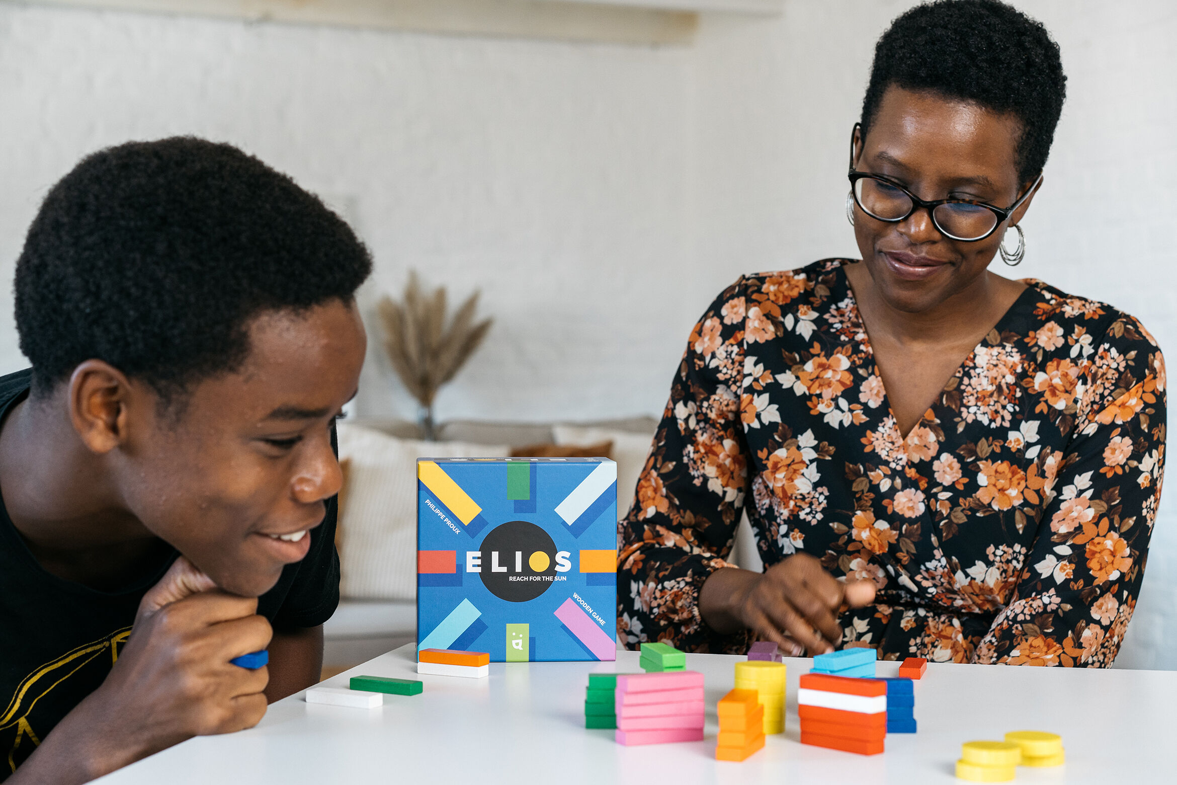 Elios ist ein abstraktes Spiel, das euch die Sonne mit bunten Strahlen aus Holz verschönern lässt. Euer Ziel ist es, als Erste oder Erster eure Strahlen um die Sonne anzuordnen.Beginnt damit, Sets aus 1, 2 oder 3 Strahlen zu bilden. Danach könnt ihr reihum jew...