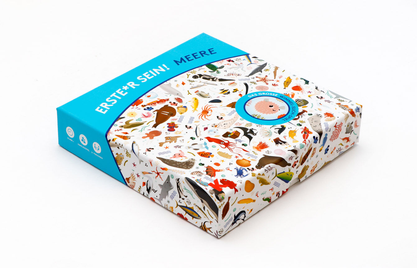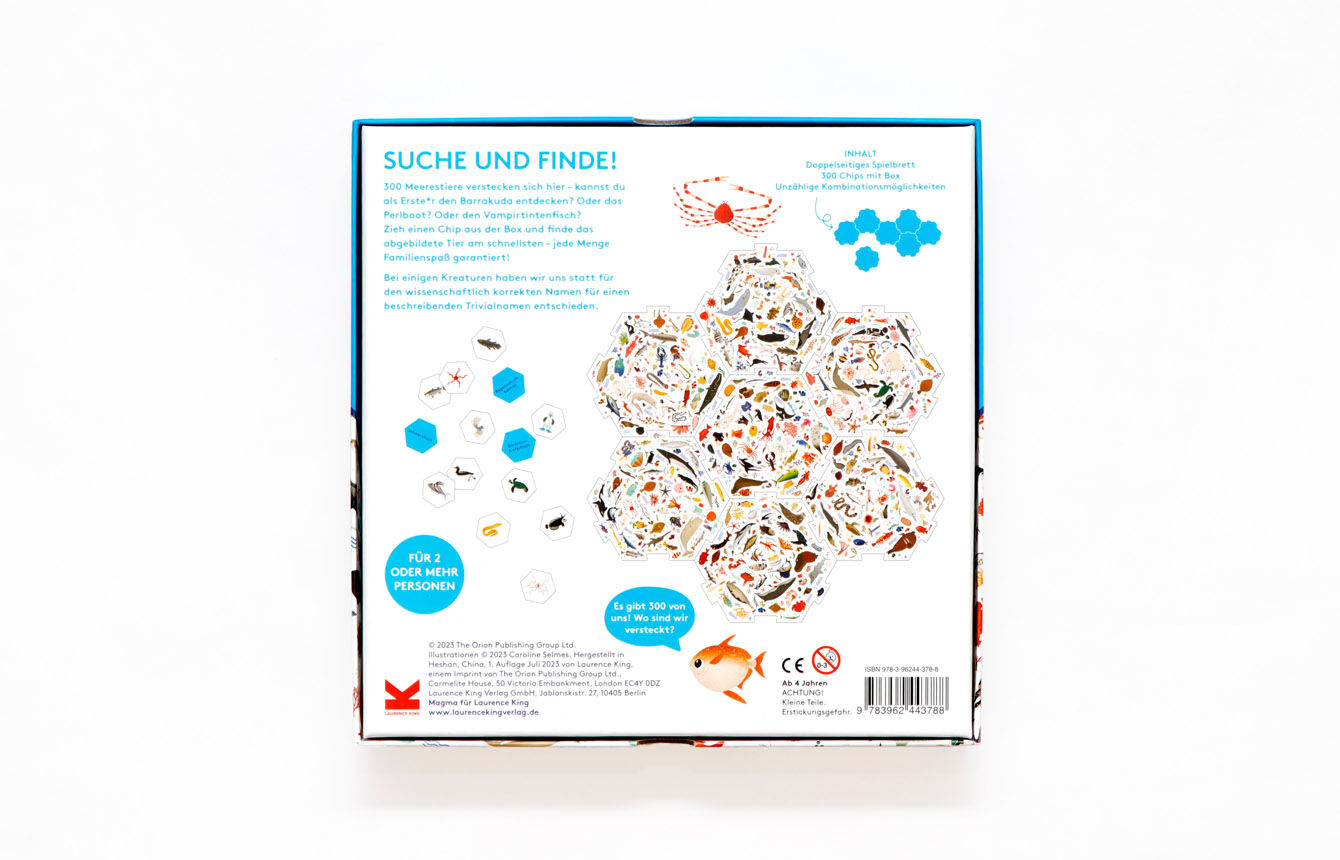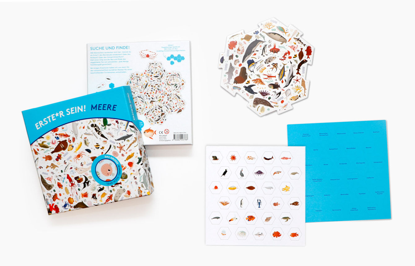 Dreihundert Meeresbewohner tummeln sich auf dem Spielbrett dieses ausgeklügelten Spiels. Ziehe einen Spielstein aus der Box und finde als Erste(r) den abgebildeten Meeresbewohner auf dem Wimmelbrett! In einer dreieckigen Schachtel und mit einem doppelseitig il...