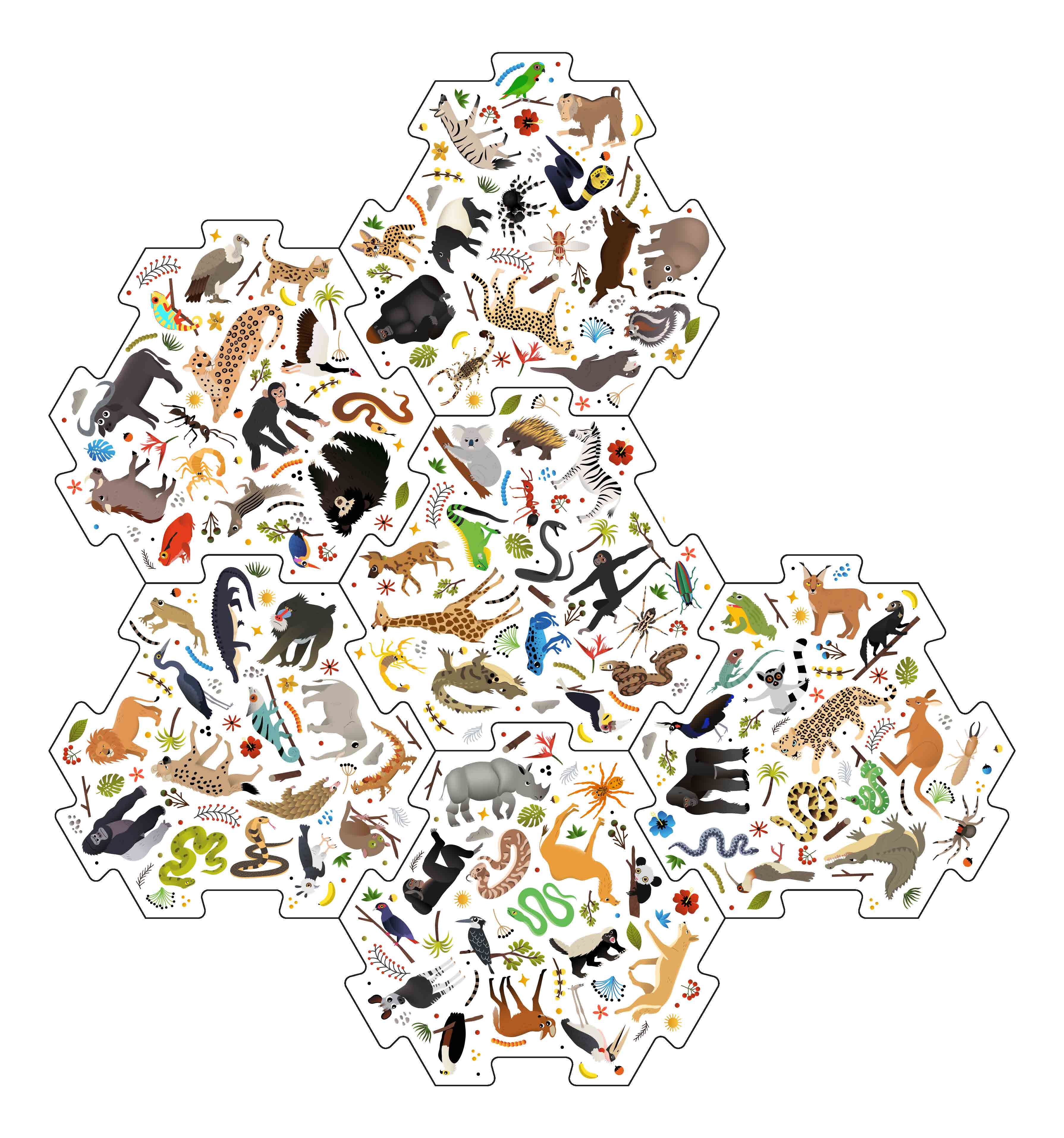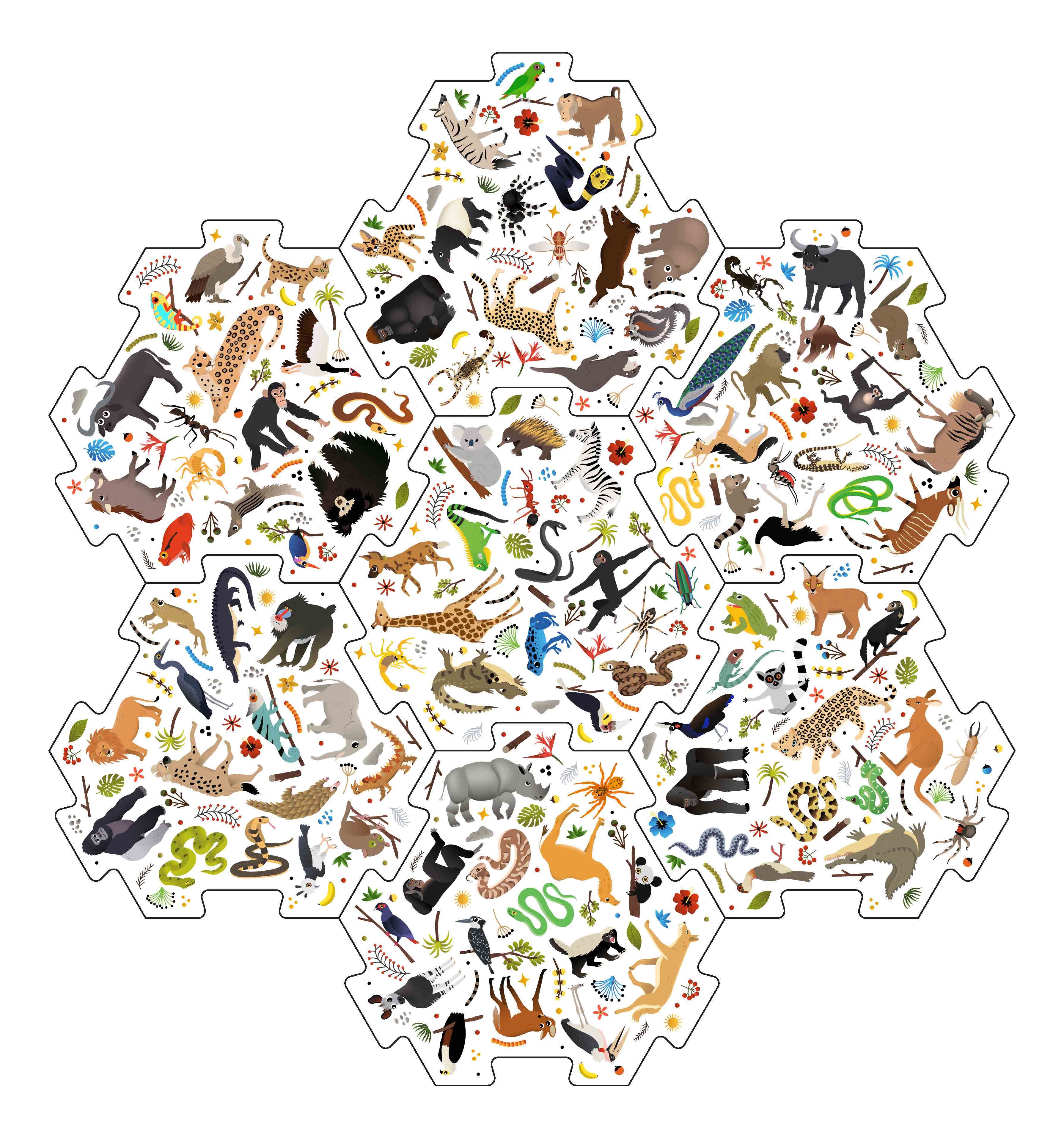 Machen Sie sich bereit für eine tierische Safari-Reise: 100+ wilde Tiere bevölkern das Spielbrett dieses farbenfrohen Wimmel-Suchspiels: von großen Giraffen über wilde Löwen und gefährliche Krokodile bis hin zu giftigen Schlangen. Wählen Sie einen Spielstein a...