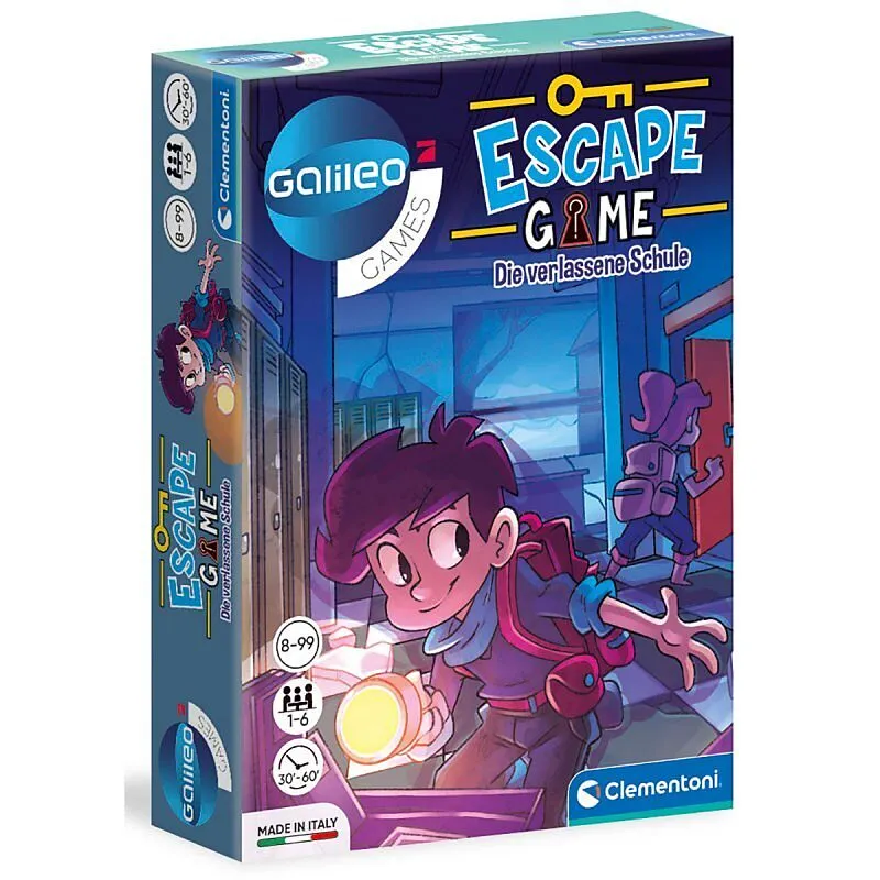 Clementoni Galileo Escape Game - Die verlassene Schule Eine verlassene Schule und ein Abenteuer voller Geheimnisse und Rätsel, die mit List und Intelligenz gelöst werden müssen, während man wie ein echter Ermittler nach versteckten Hinweisen sucht! Ein Spiel m...